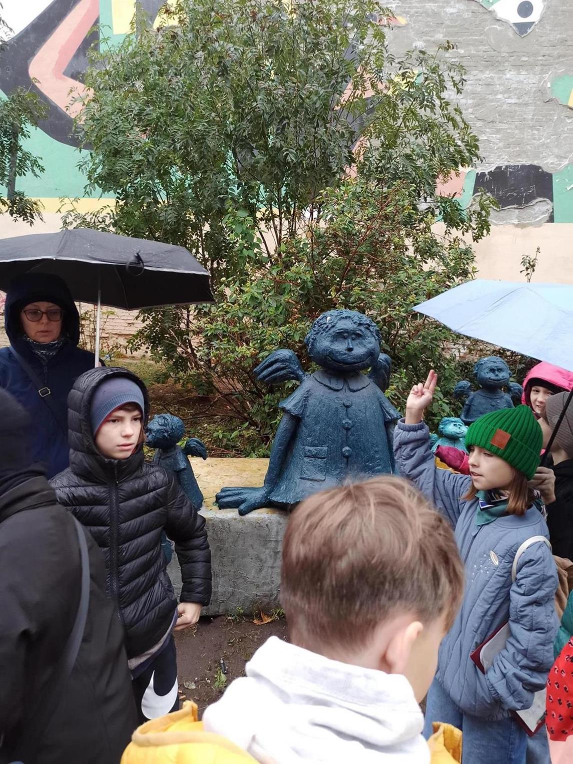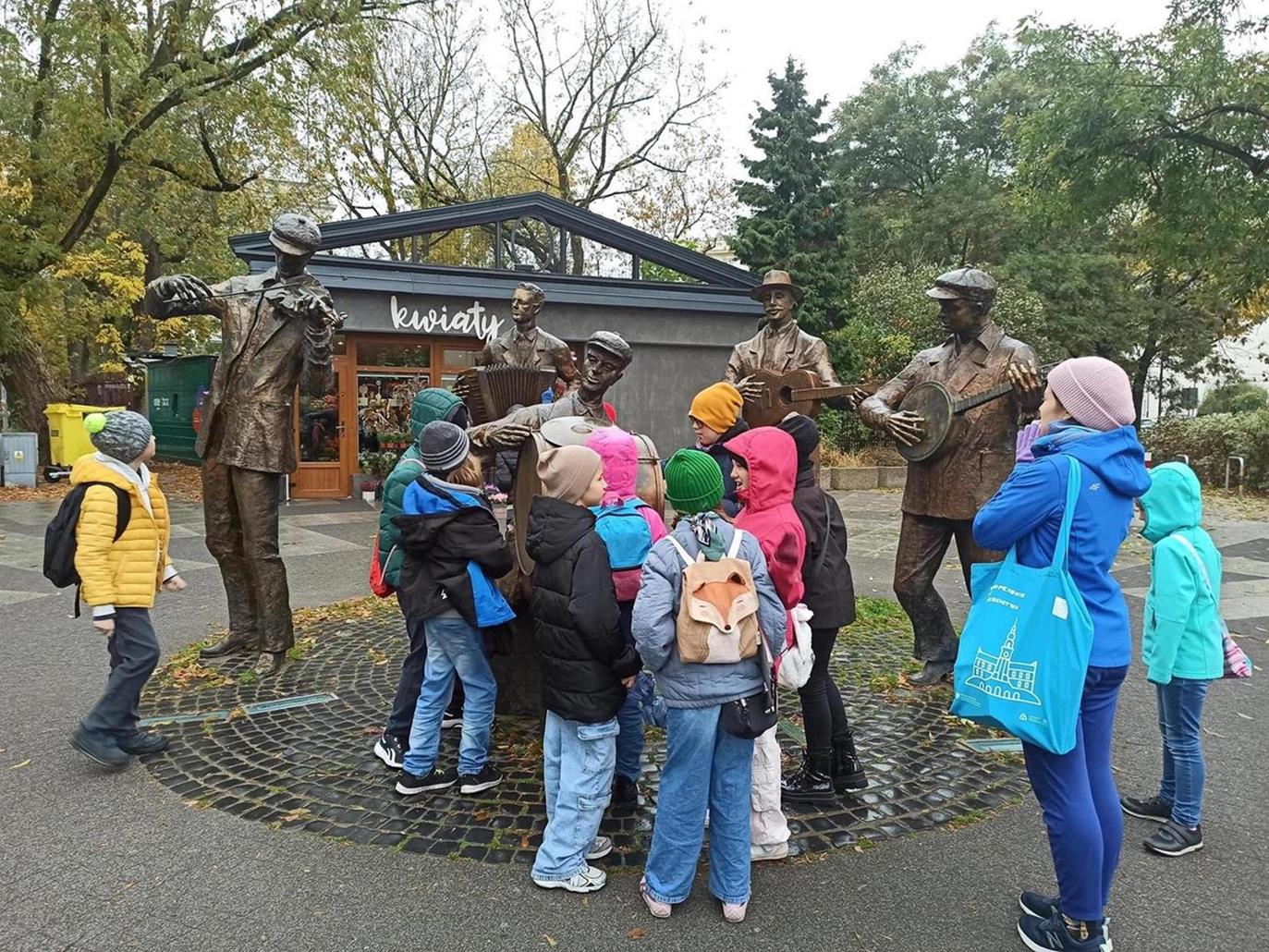 Dzieci odwiedziły również słynne praskie pomniki m. in. Pomnik Praskiej Kapeli Podwórkowej, rzeżbę praskich aniołków, a także praskie murale.
