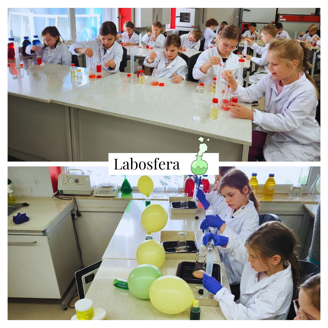 12 maja klasy 1a i 1b wyruszyły w fascynującą podróż do świata nauki! Podczas wycieczki do Labosfery uczniowie wzięli udział w warsztatach chemicznych, które wzbudziły mnóstwo emocji i ciekawości. Dzieci samodzielnie tworzyły wybuchające wulkany, robiły kolorowe lampy lawowe oraz pompowały balony... bez użycia powietrza!