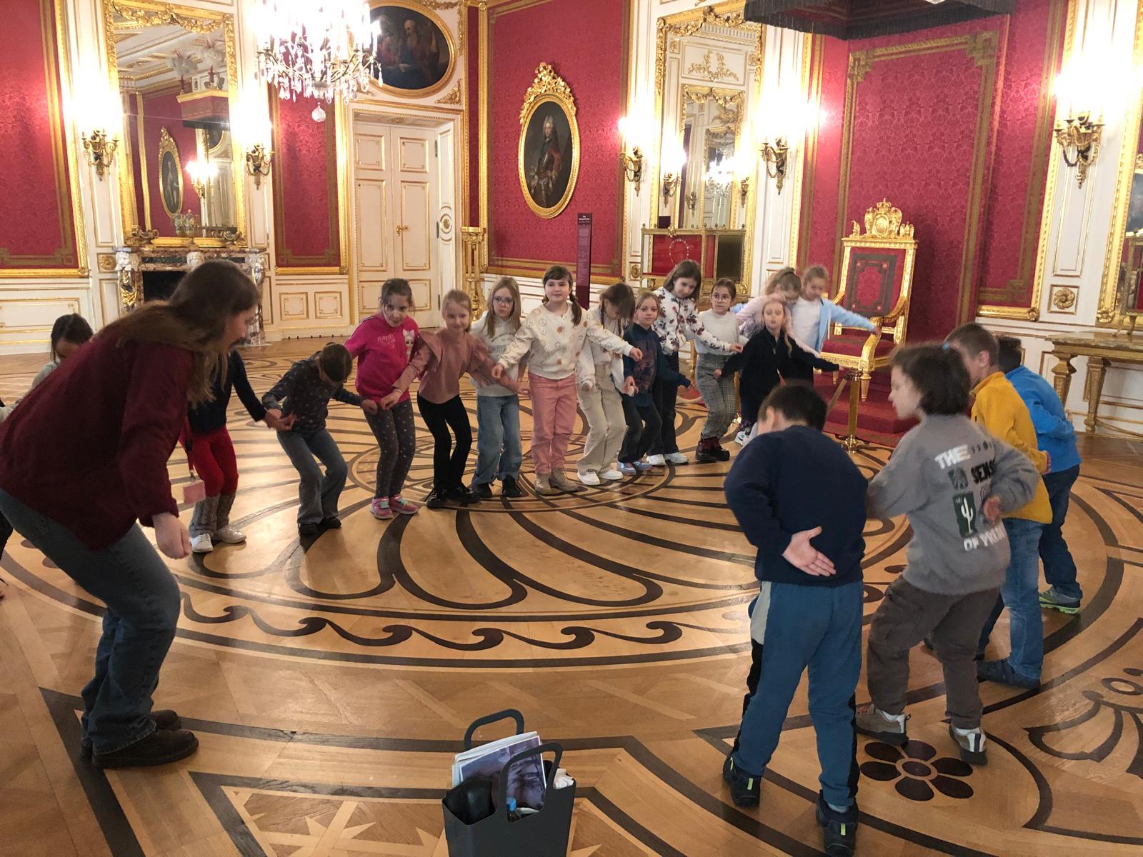 15 marca uczniowie klasy 2a i 2b wybrali się do Zamku Królewskiego. Usłyszeli opowieść o czworonożnym ulubieńcu króla z ust jednego z arystokratów. Ponadto dzieci miały okazję zagościć w królewskich komnatach, zobaczyć z bliska między innymi salę tronową oraz baletową. Był również czas na poznanie dworskiej etykiety tanecznej. To była wspaniała lekcja żywej historii.