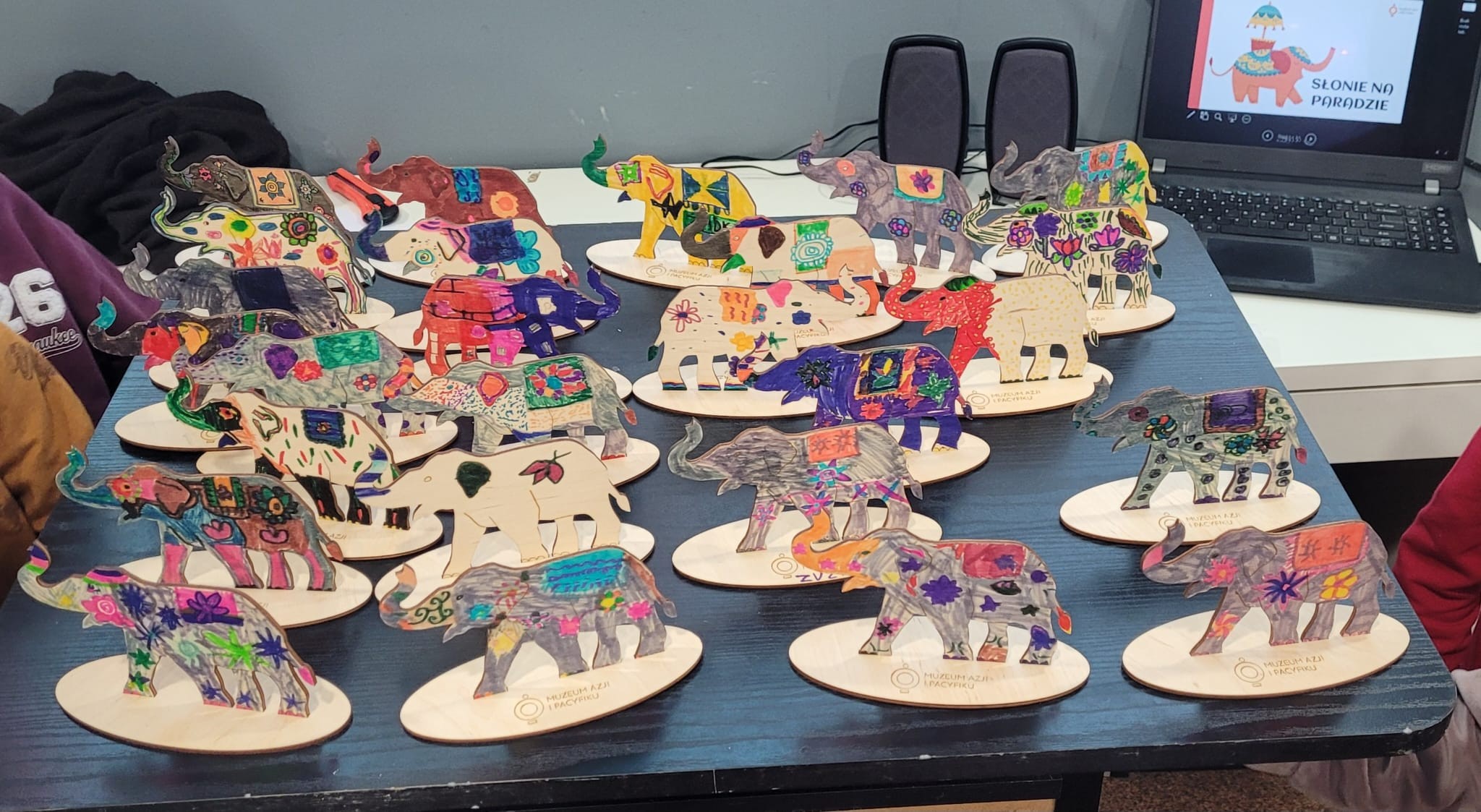 5 grudnia uczniowie klas pierwszych uczestniczyli w ciekawych warsztatach „Słonie na paradzie” w Muzeum Azji i Pacyfiku. Podczas zajęć dzieci poznały fascynujący świat słoni — dowiedziały się m.in. ile waży dorosły słoń, co znajduje się w jego codziennym menu oraz… w jakiej pozycji te ogromne zwierzęta potrafią spać.