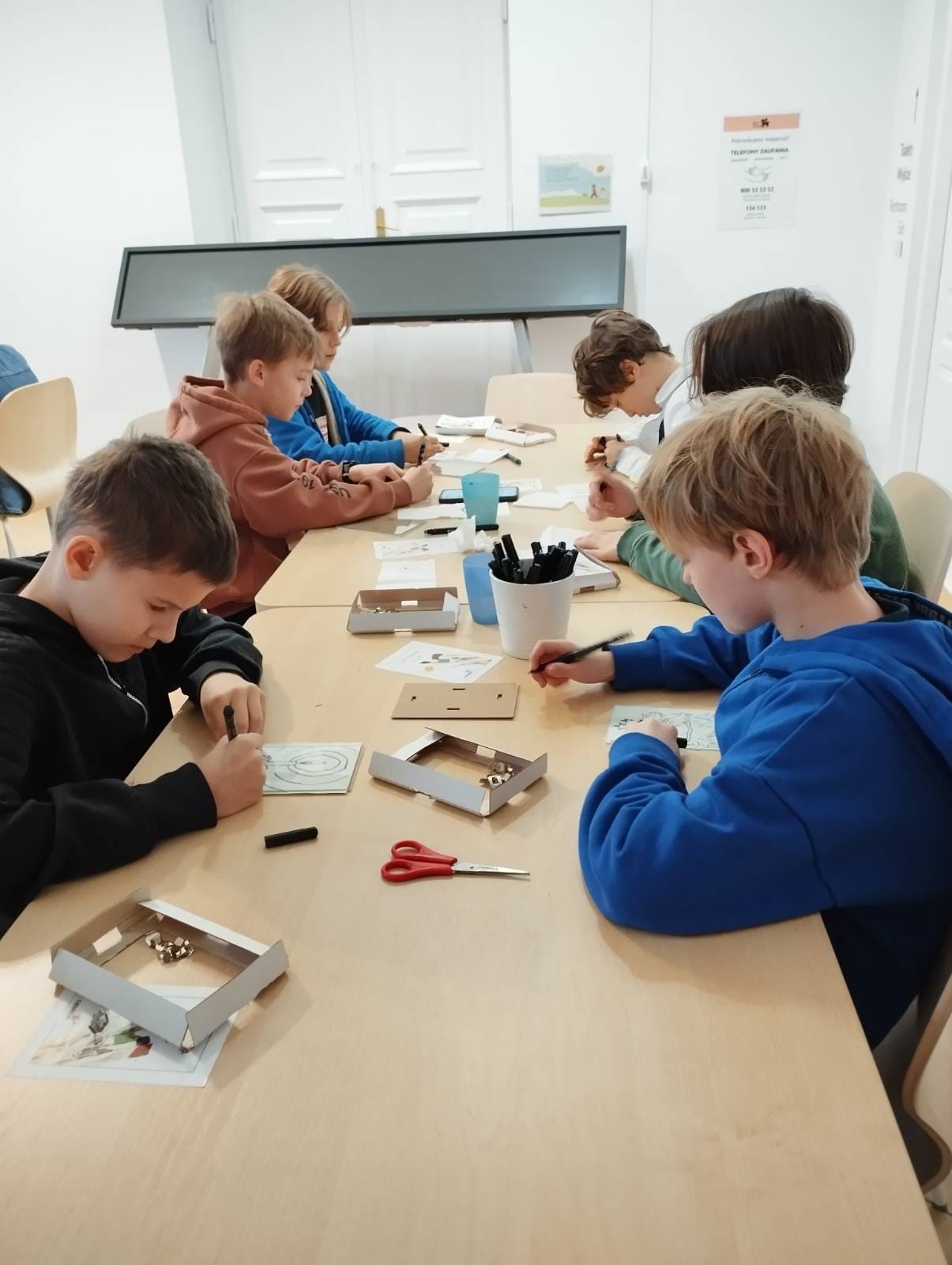 4 grudnia uczniowie klasy 3A uczestniczyli w zajęciach o sztuce połączonych z warsztatami twórczymi i zwiedzaniem wystawy "Kwiaty polskie" w Państwowym Muzeum Etnograficznym. Zajęcia były przestrzenią do twórczego działania, eksperymentowania oraz rozbudzania odwagi do wyrażania siebie poprzez kolory i kształty. Dzieci samodzielnie, według szablonu lub własnego pomysłu, tworzyły kolorowe obrazy techniką malowania na szkle. Wykazały się dużą kreatywnością.