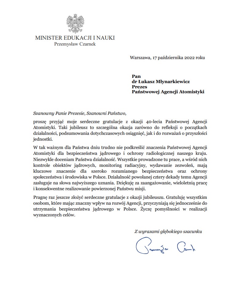 Jubileusz 40-lecia istnienia Państwowej Agencji Atomistyki