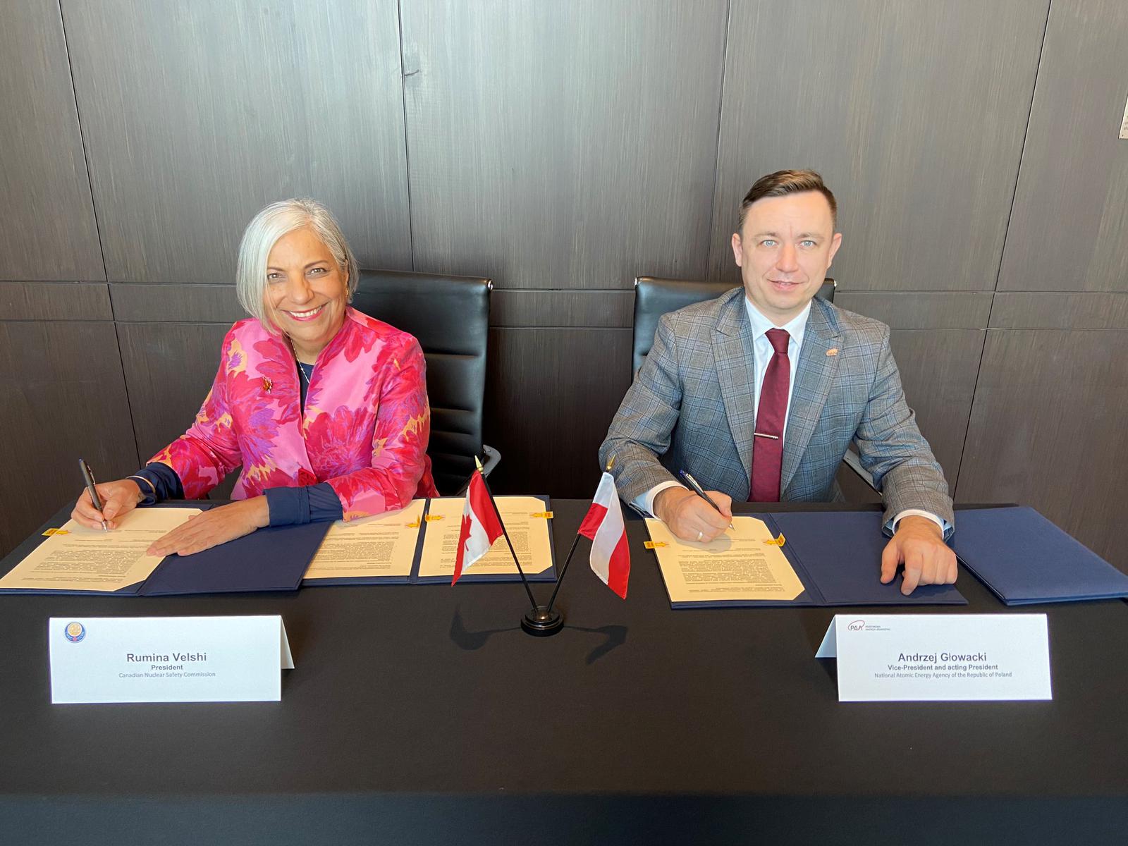 Podpisy pod umową o dalszej współpracy Polski i Kanady w zakresie bezpieczeństwa jądrowego złożyli Andrzej Głowacki, wykonujący obowiązki Prezesa PAA i Rumina Velshi Przewodnicząca Kanadyjskiej Komisji Dozoru Jądrowego (CNSC).
