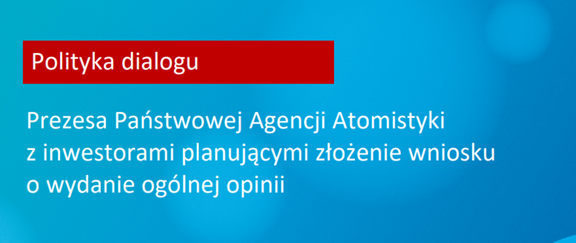 Polityka dialogu Prezesa Państwowej Agencji Atomistyki z jednostkami planującymi złożenie wniosku o wydanie ogólnej opinii Prezesa PAA to kolejny dokument opisujący zasady dialogu polskiego dozoru jądrowego z inwestorami.