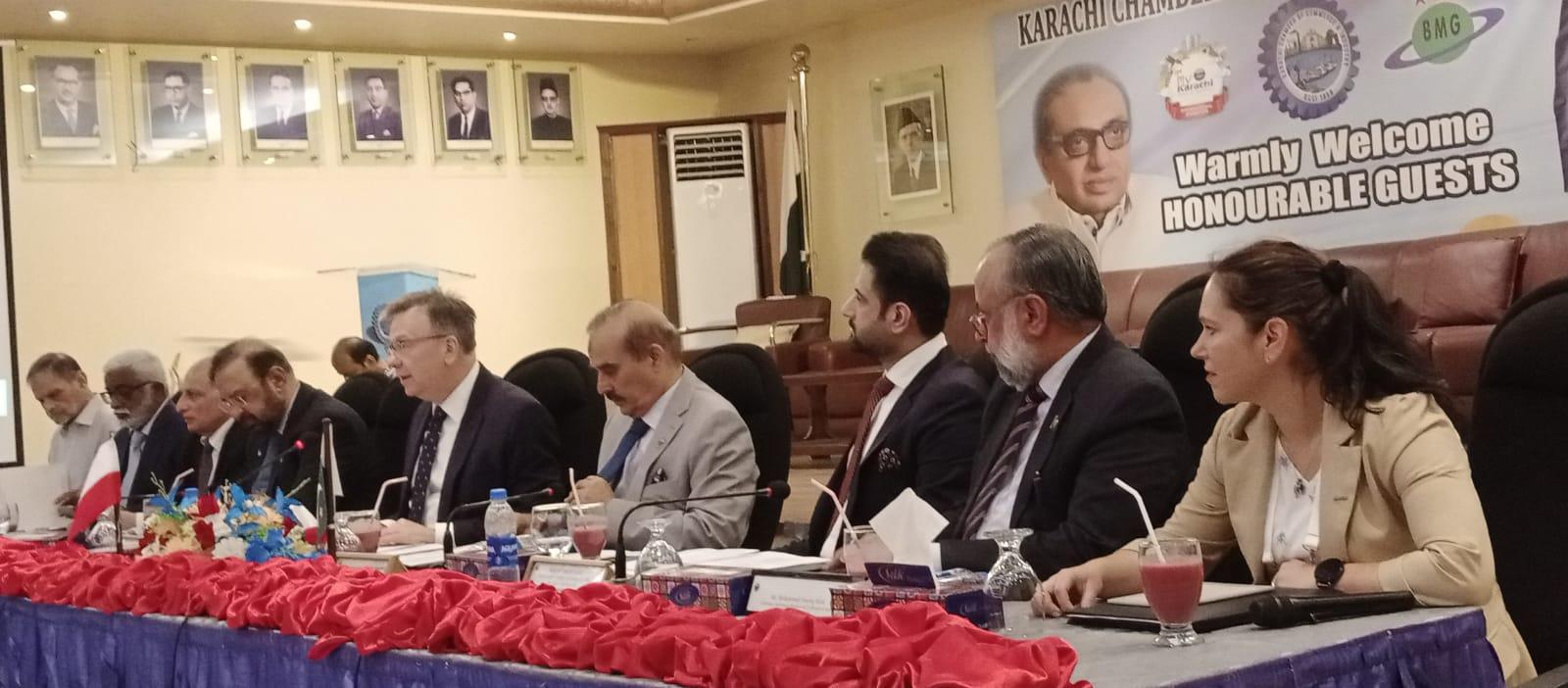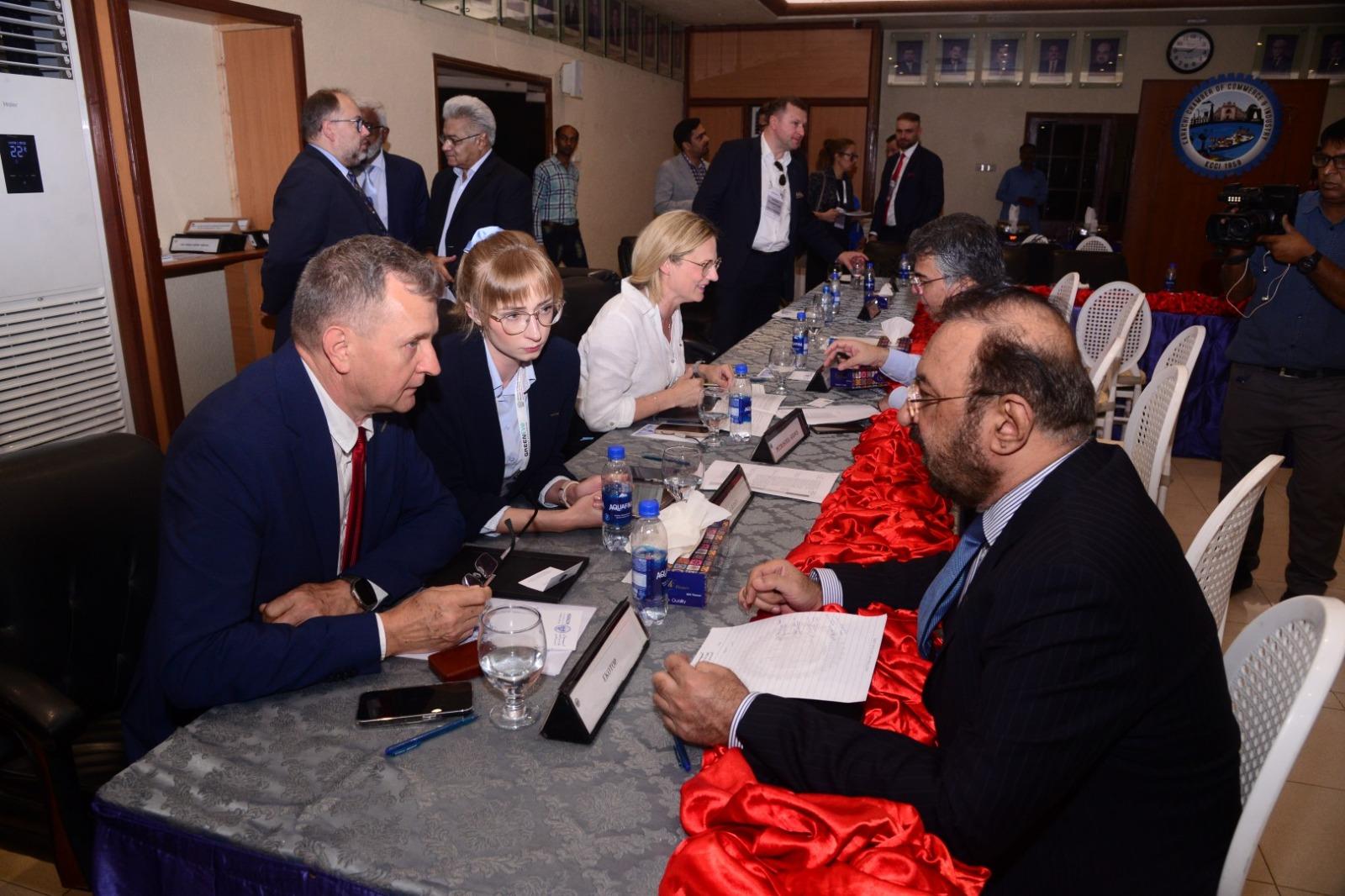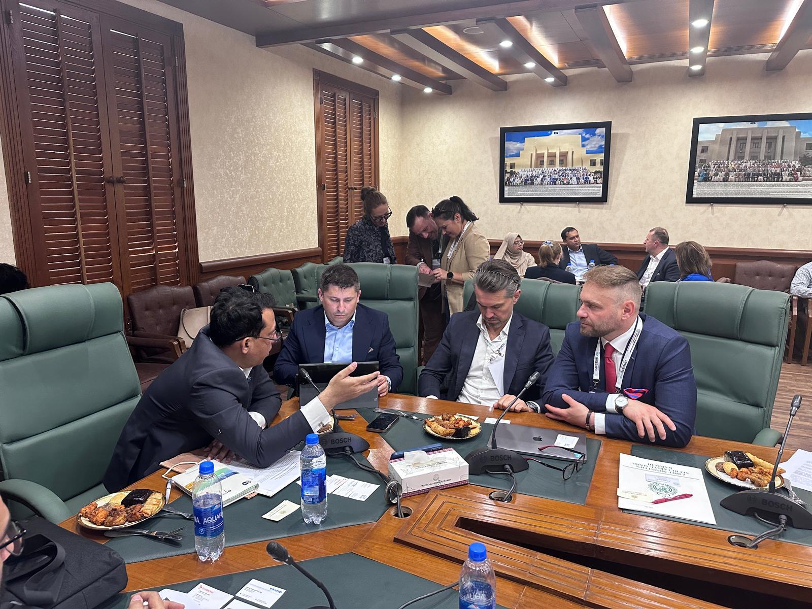 The main purpose of the visit to Karachi was to participate in an economic event organized in collaboration with the local Chamber of Commerce and Industry (KCCI) and with the substantial participation of Mirza Omair Baig, Honorary Consul of the Republic of Poland in Karachi. Maciej Pisarski, the ambassador of the Republic of Poland, and Iftikhar Ahmed Sheikh, the president of KCCI, were present during the inauguration ceremony. The forum brought together several dozen local entrepreneurs who were introduced to Polish green innovations. The event's highlight was the vibrant B2B discussions with entrepreneurs from both countries.