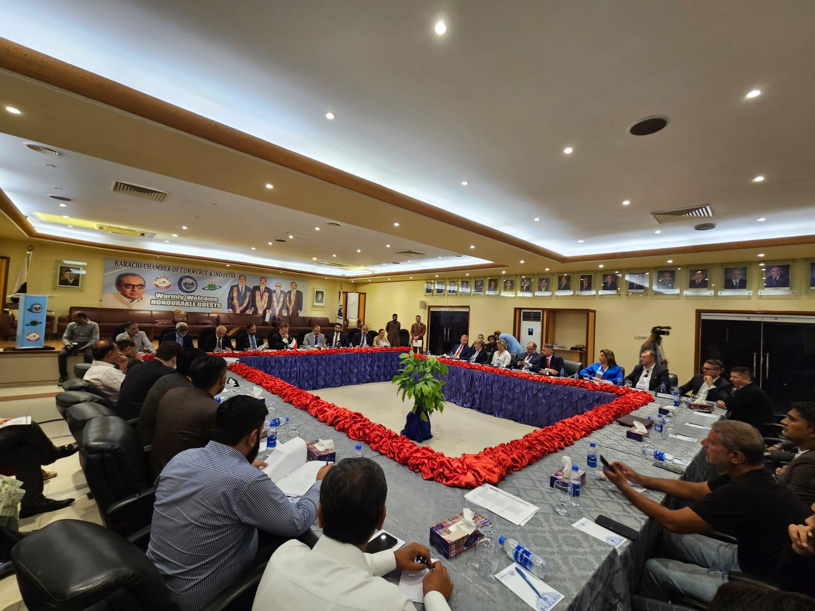 W trakcie wizyty w Karaczi polscy przedsiębiorcy wzięli udział w forum ekonomicznym zorganizowanym we współpracy z Izbą Przemysłowo-Handlową KCCI oraz przy wydatnym zaangażowaniu Konsula honorowego RP w Karaczi Mirzy Omaira Baiga. Otwarcia spotkania dokonali Ambasador RP Maciej Pisarski oraz prezydent KCCI Iftikhar Ahmed Sheikh. Forum zgromadziło kilkudziesięciu lokalnych przedsiębiorców, którym zaprezentowano polskie zielone technologie. Prezentacji polskiej oferty towarzyszyły ożywione rozmowy między przedsiębiorcami z obydwu krajów.
