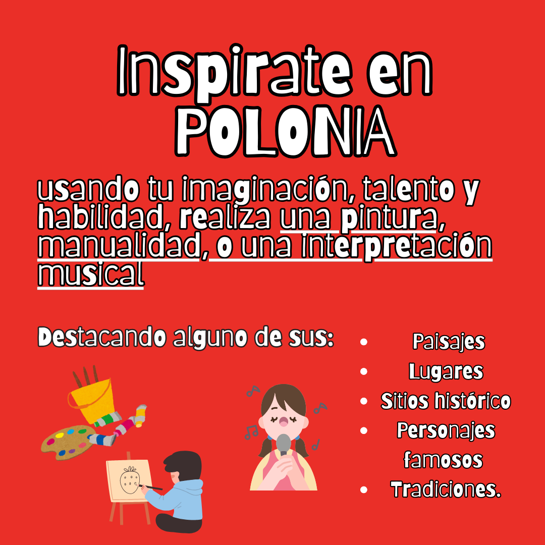 1.- Para participar el participante debe confeccionar un (01) arte (pintura, manualidad, o una interpretación musical) sobre una ciudad polaca, destacando sus paisajes, lugares, sitios históricos, personajes famosos o tradiciones, haciendo uso de materiales de su elección y su libre creatividad.
