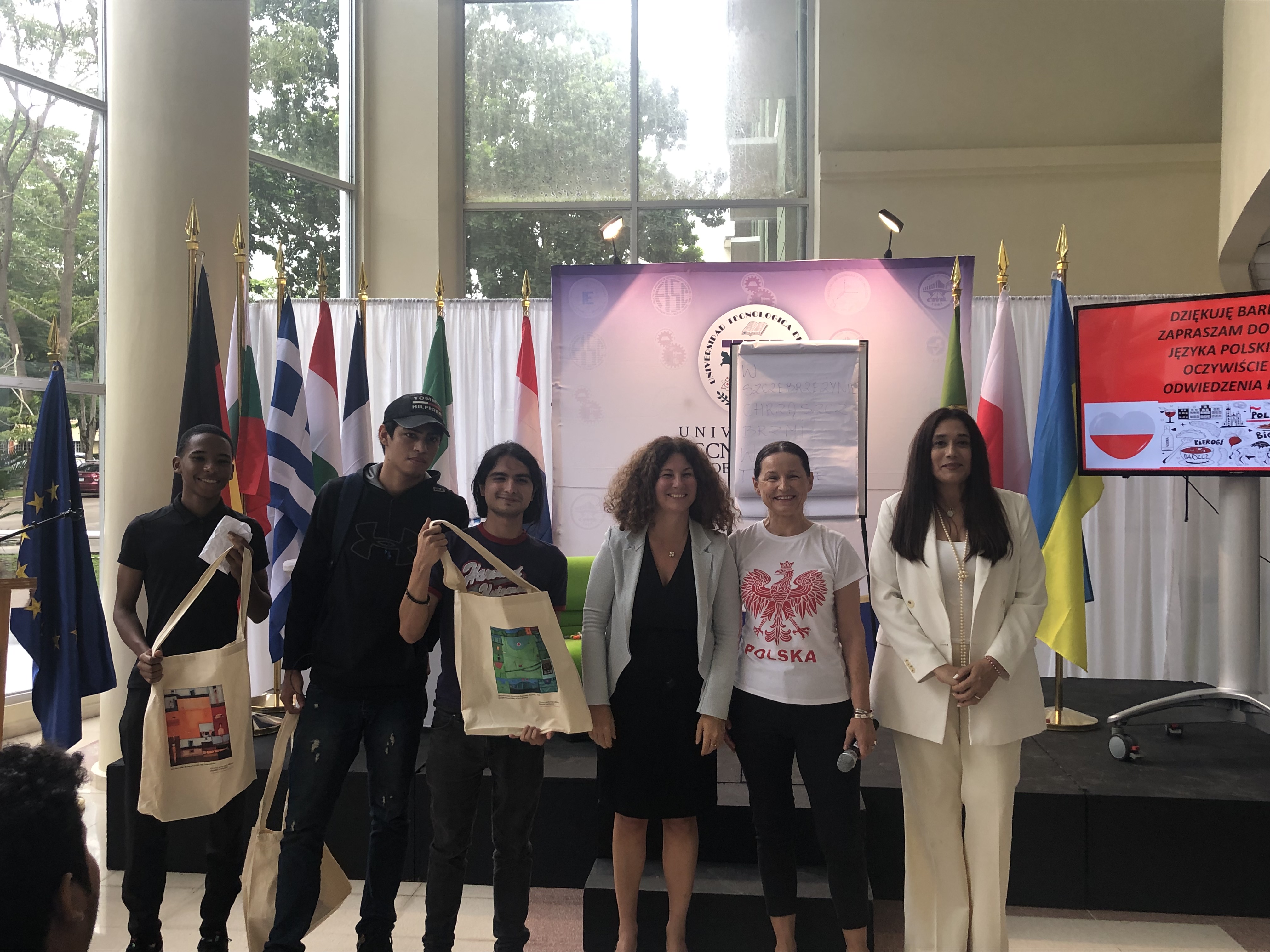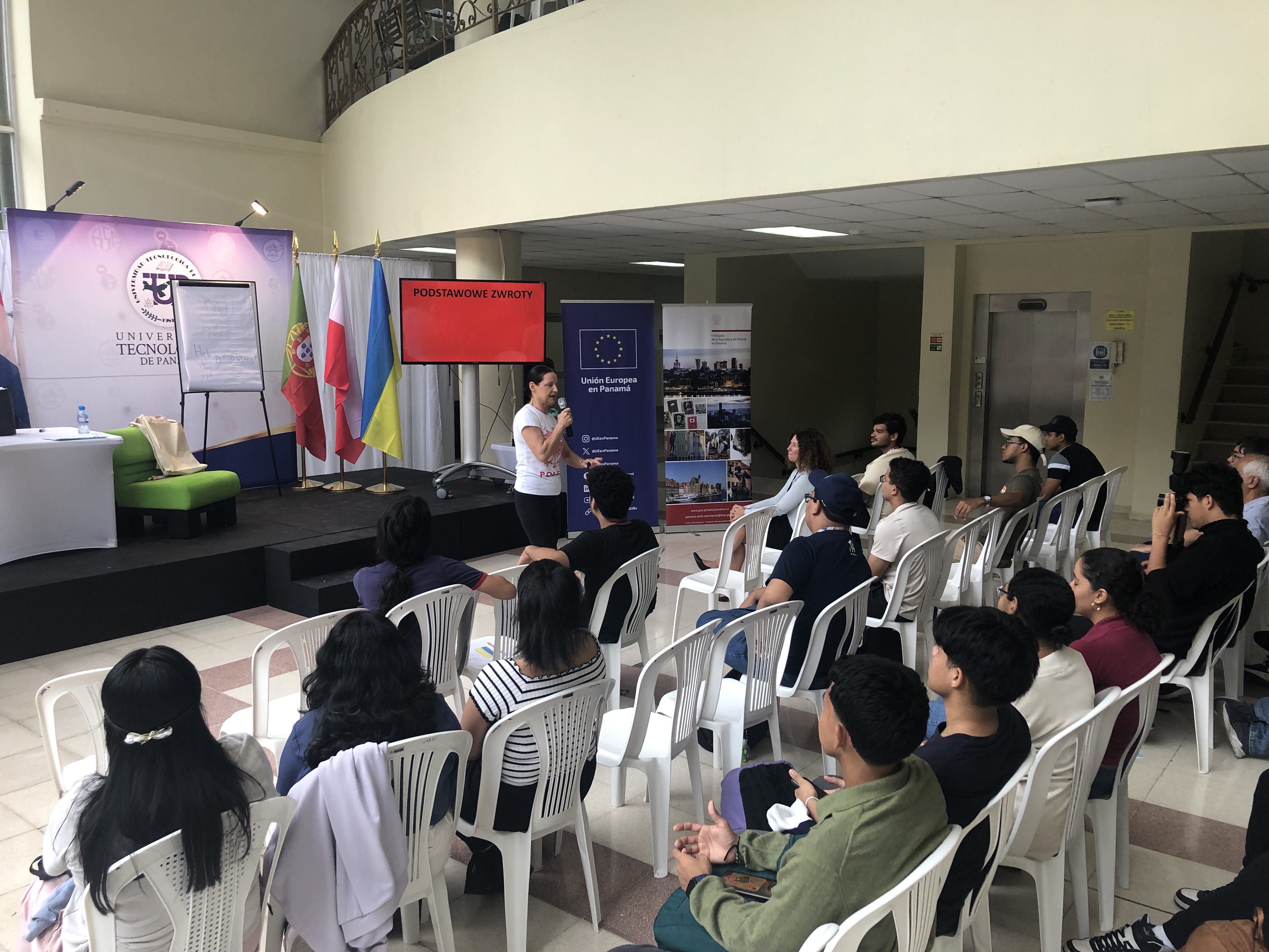 El 26 de septiembre de este año, representantes de la Embajada de Polonia en Panamá participaron en el Día Europeo de las Lenguas, organizado por la Delegación de la UE en Panamá. El evento tuvo lugar en la Universidad Tecnológica de Panamá y contó con una gran asistencia de estudiantes. La clase de polaco fue impartida por Joanna Giża, y la Embajada de Polonia en Panamá entregó tres regalos a los ganadores del concurso.