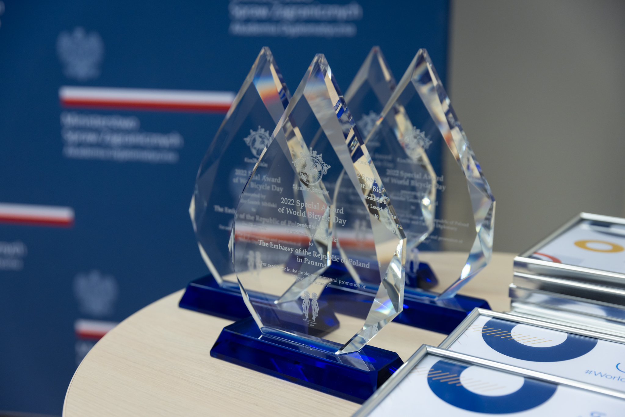 En la víspera del Día del Servicio Exterior, el ministro Arkady Rzegocki entregó a los diplomáticos polacos en Varsovia estatuillas de cristal y diplomas con nombre financiados por el profesor Leszek Sibilski, iniciador del Día Mundial de la Bicicleta, que se celebra desde 2018 el 3 de junio en virtud de una resolución de las Naciones Unidas.