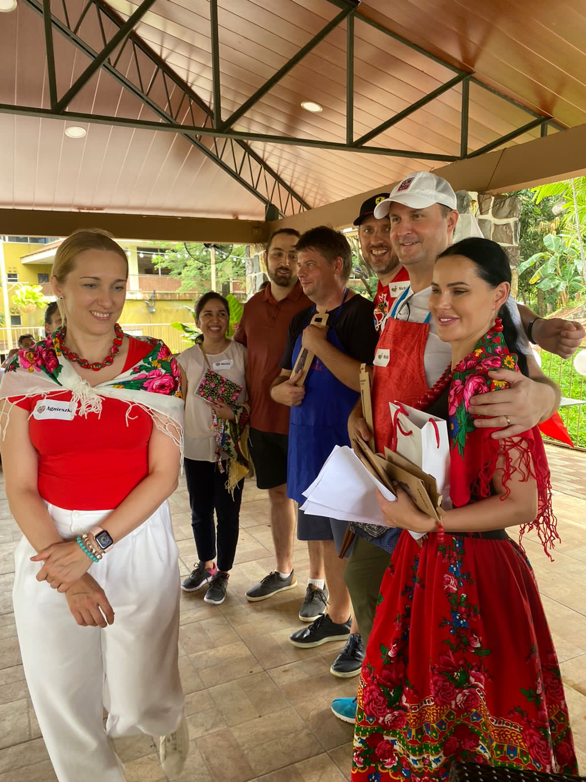 La Embajada de Polonia en Panamá y varios voluntarios prepararon un refrigerio tradicional polaco. Se podía disfrutar de los sabores de las salchichas, el pan tradicional, la ensalada de verduras, el chucrut y los pepinos encurtidos, el pan de especias y los dulces polacos. Los invitados se lo pasaron en grande conversando y compitiendo con el acompañamiento de música polaca.