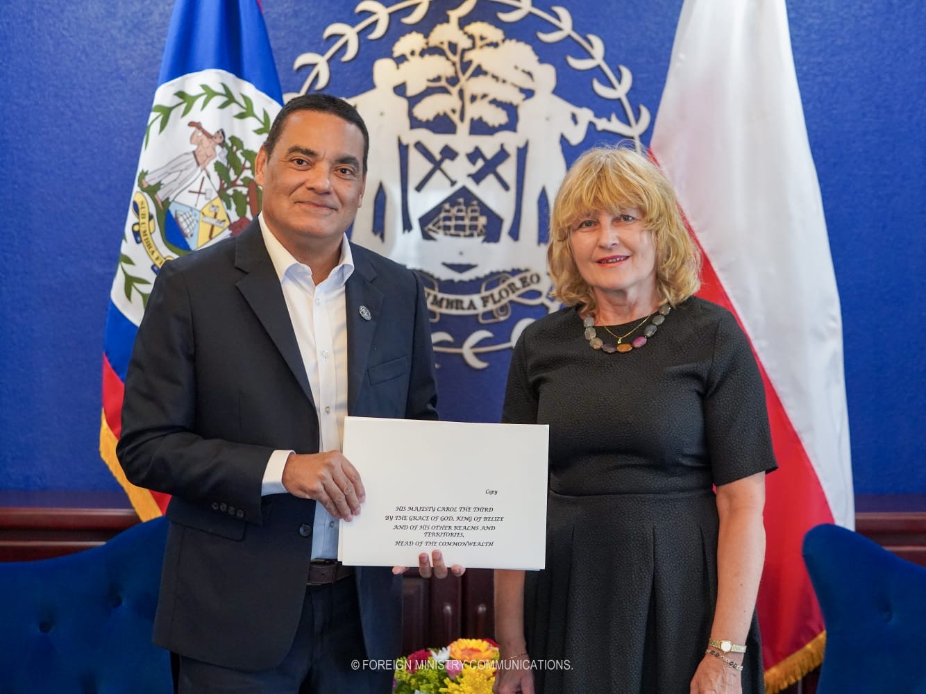 La Embajadora de Polonia en Belice, Jolanta Janek, entregó el 17.09.2025 al Ministro de Relaciones Exteriores de Belice, S.E. Francis William Fonseca, las Copias de Estilo de las Cartas Credenciales que la acreditan como Embajadora de Polonia concurrente para Belice.