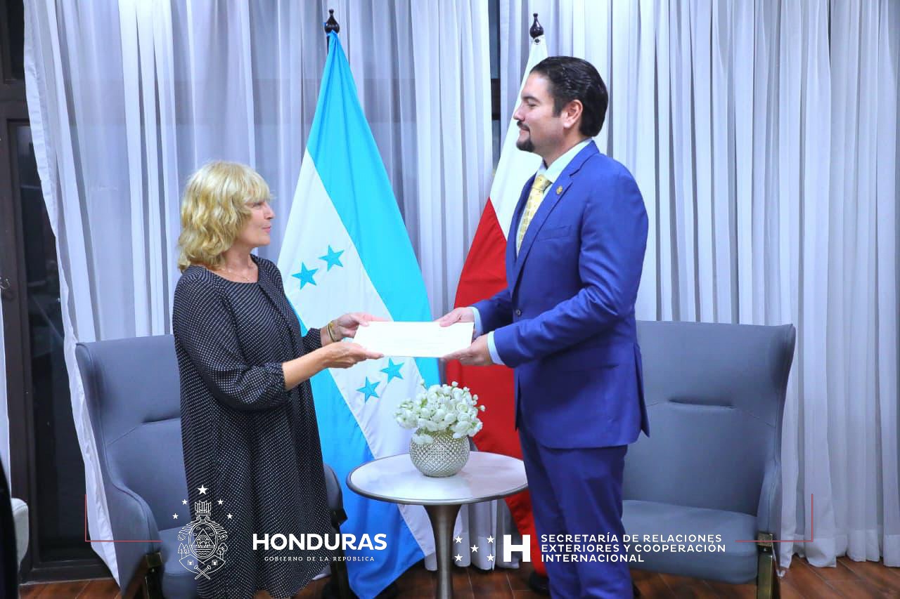 La Embajadora de Polonia en Honduras, Jolanta Janek, entregó 20.10.2025 al Canciller Javier Bu Soto, las Copias de Estilo de las Cartas Credenciales que la acreditan como Embajadora de Polonia concurrente para Honduras.