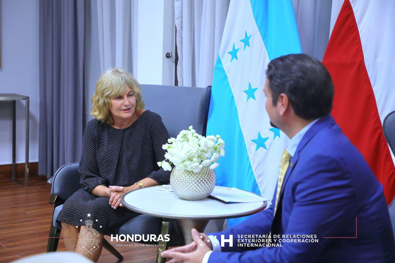 Durante el encuentro la Embajadora de Polonia 🇵🇱 y el Canciller de Honduras 🇭🇳 , destacaron las buenas relaciones bilaterales y diplomáticas entre Polonia y Honduras. Han conversado sobre el desarrollo de las relaciones bilaterales entre Polonia y Honduras en varios campos políticos, económicos, culturales, científicos y turísticos, aprovechando el potencial que existe, fortaleciendo los lazos de amistad y cooperación para el bien de ambos países.