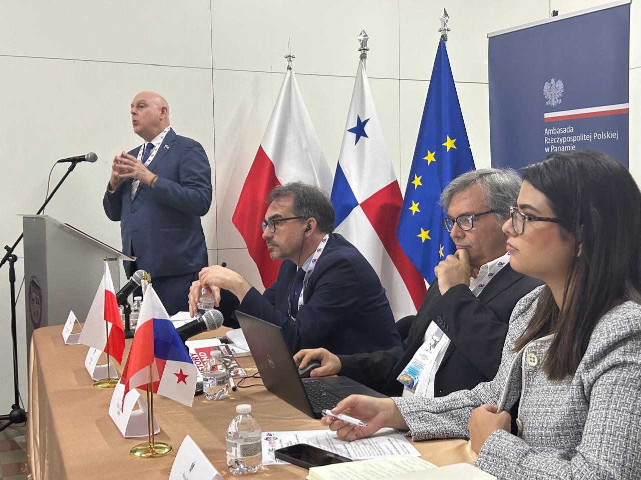 Szef Misji dr J. Janek w swoim wystąpieniu zwróciła uwagę na wyzwania stojące przed Europą i AŁiK, które mają istotny wpływ na politykę zagraniczną obu państw. Podkreśliła wagę relacji polsko-panamskich oraz możliwości, jakie niesie obecna sytuacja geopolityczna dla ich dalszego rozwoju. Wskazała, że „okrągły stół" jest wydarzeniem, które ambasada RP organizuje w ramach polskiej prezydencji w Radzie UE oraz przedstawiła jej priorytety w bieżącym półroczu, skoncentrowane m.in. na utrwalaniu bezpieczeństwa i pokoju na świecie.