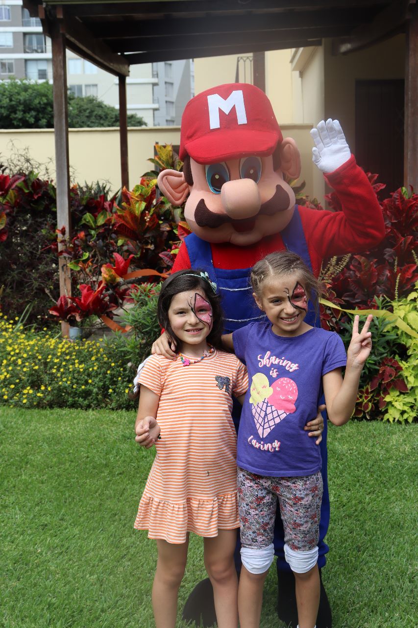 Los más pequeños tenían a su disposición una pequeña escalera, una piscina de pelotas y un tobogán, los mayores podían saltar en una cama elástica e inflables, y las enormes mascotas Super Mario y Yoshi animaban a todos a jugar.