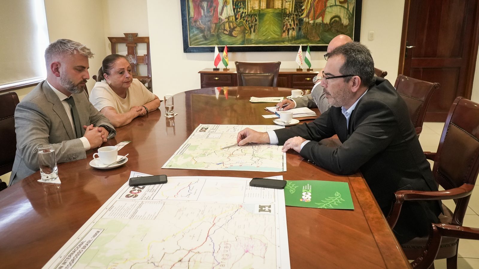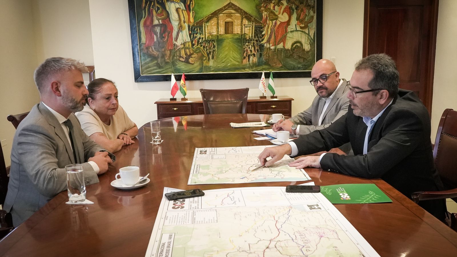 En la reunión, se compartió la visión de Santa Cruz sobre la integración regional, destacando proyectos concesionales en corredores logísticos, comercio, inversión y agricultura. También se expusieron los avances en el área Metropolitana y las iniciativas en energías renovables, como parques eólicos e hidroeléctricas, clave para el desarrollo sostenible del departamento.
