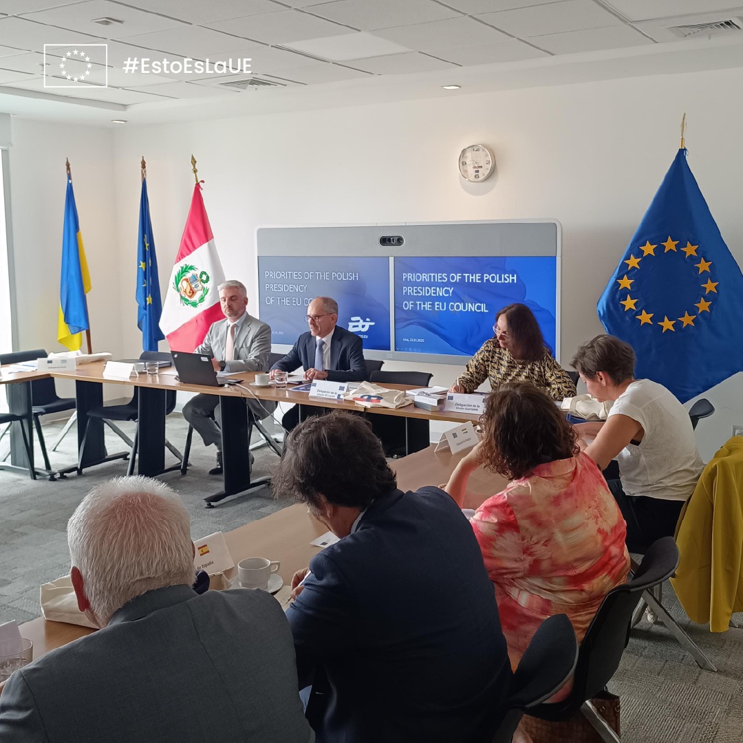 En la sede de la Delegación de la Unión Europea en Lima se realizó la primera reunión del año de los embajadores de los Estados miembros de la UE, conocidos como 'Team Europe'. Durante este evento, el encargado de negocios a.i. de la Embajada de Polonia en Lima, Oskar Grądziel, presentó las prioridades de la presidencia polaca en el Consejo de la Unión Europea, que Polonia asumió el 1 de enero de 2025.