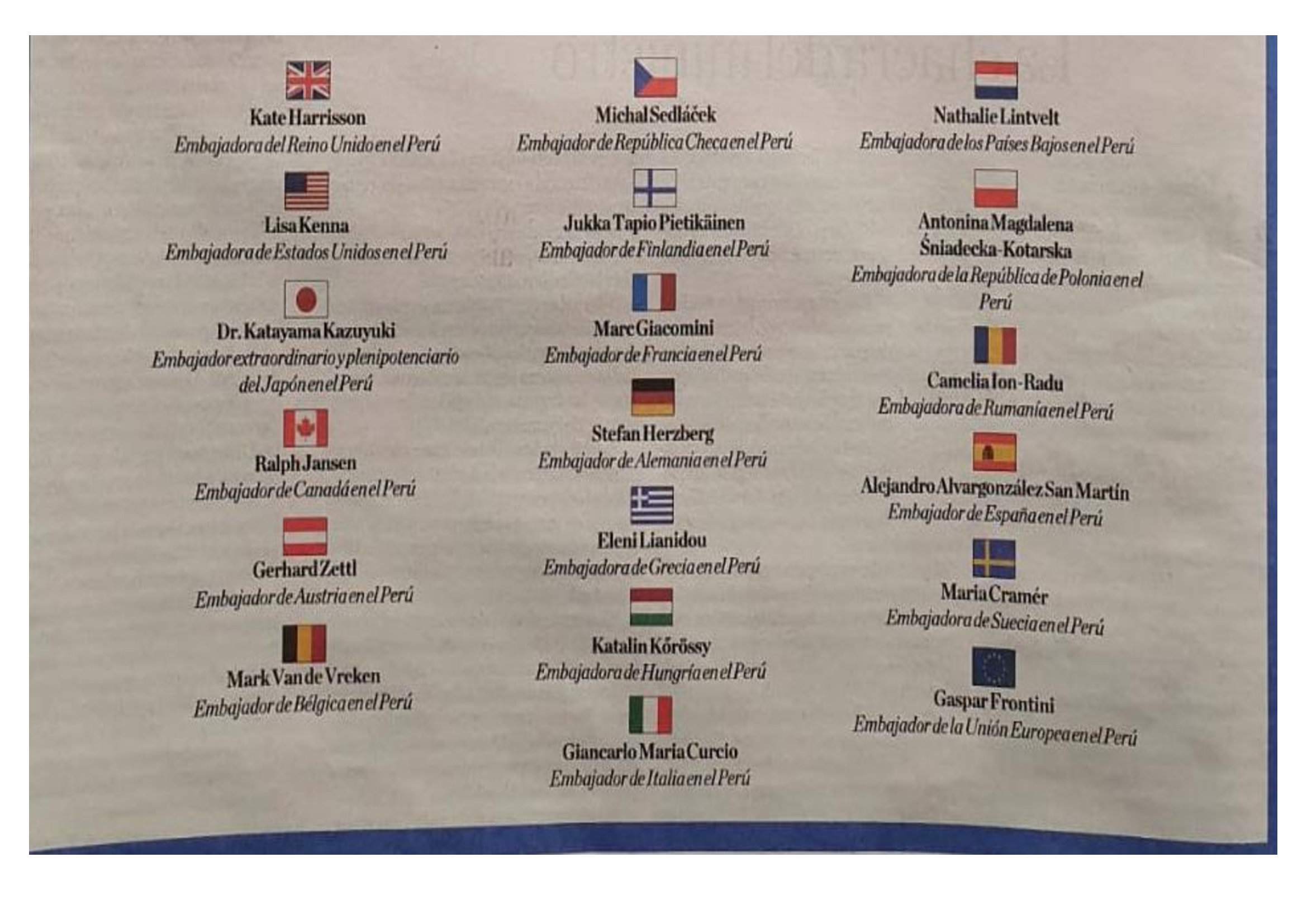 Muchos peruanos y ciudadanos de todo el mundo ya han expresado su condena, porque la crisis actual nos afecta a todos. Están en juego los principios democráticos y el respeto al derecho internacional.