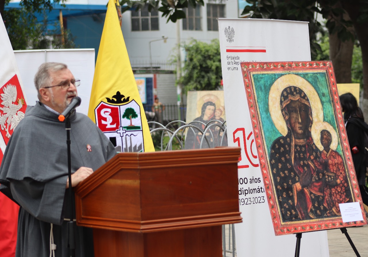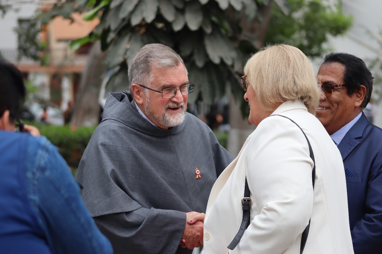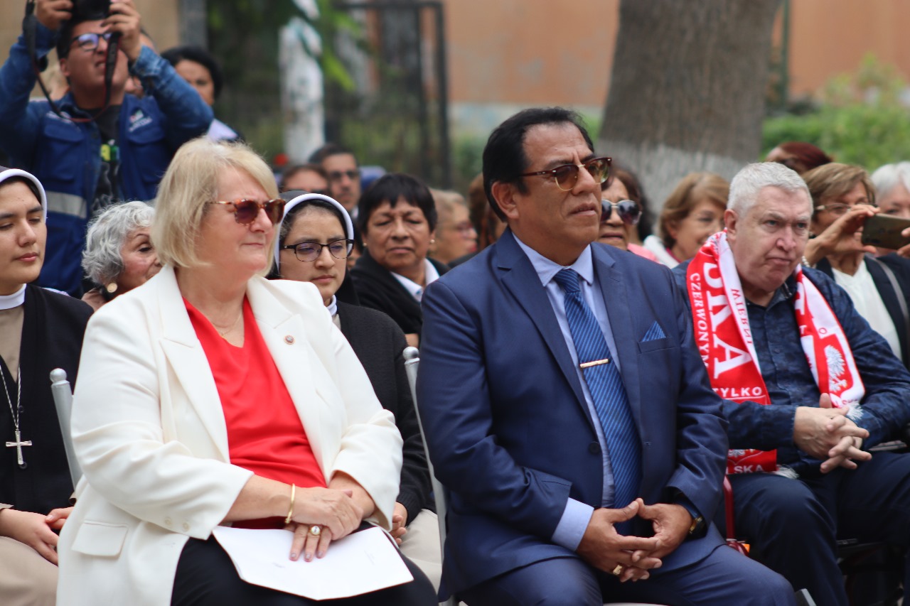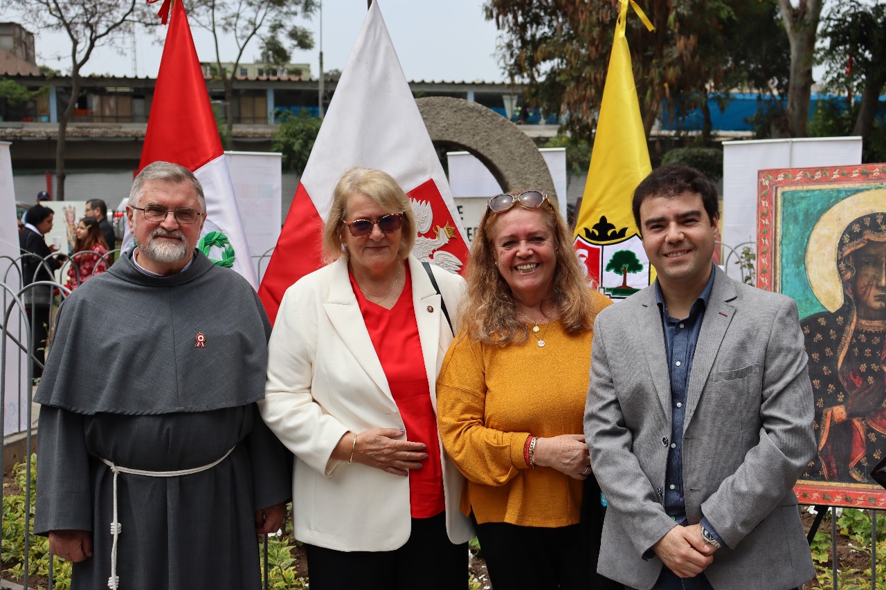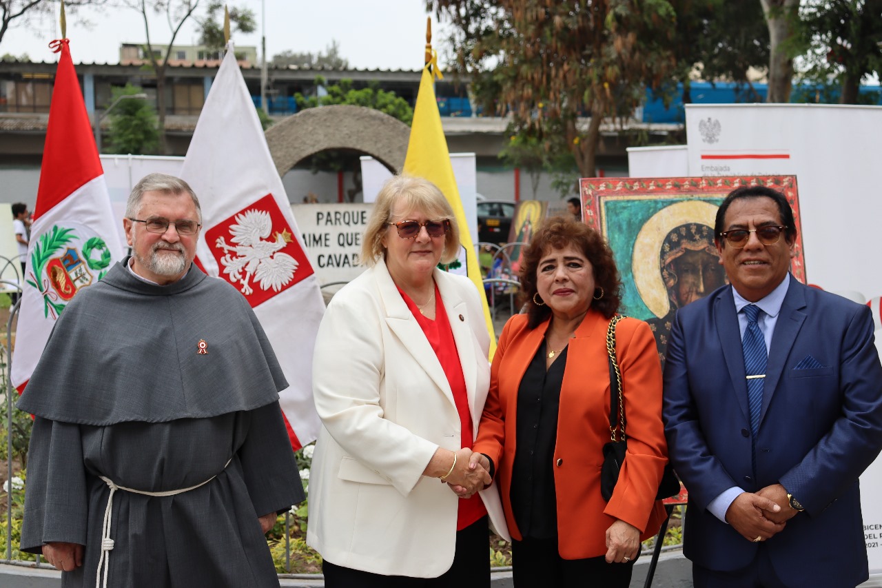 Ceremonia para conmemorar el Centenario de las relaciones Polaco - Peruanas: una placa conmemorativa del acontecimiento, donada al Alcalde de San Luis, la misma que se colocará en el parque Jaime Quevedo Cavada, junto a la iglesia donde trabajan los franciscanos polacos.