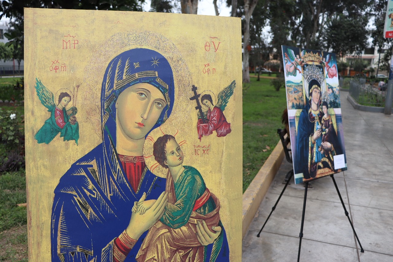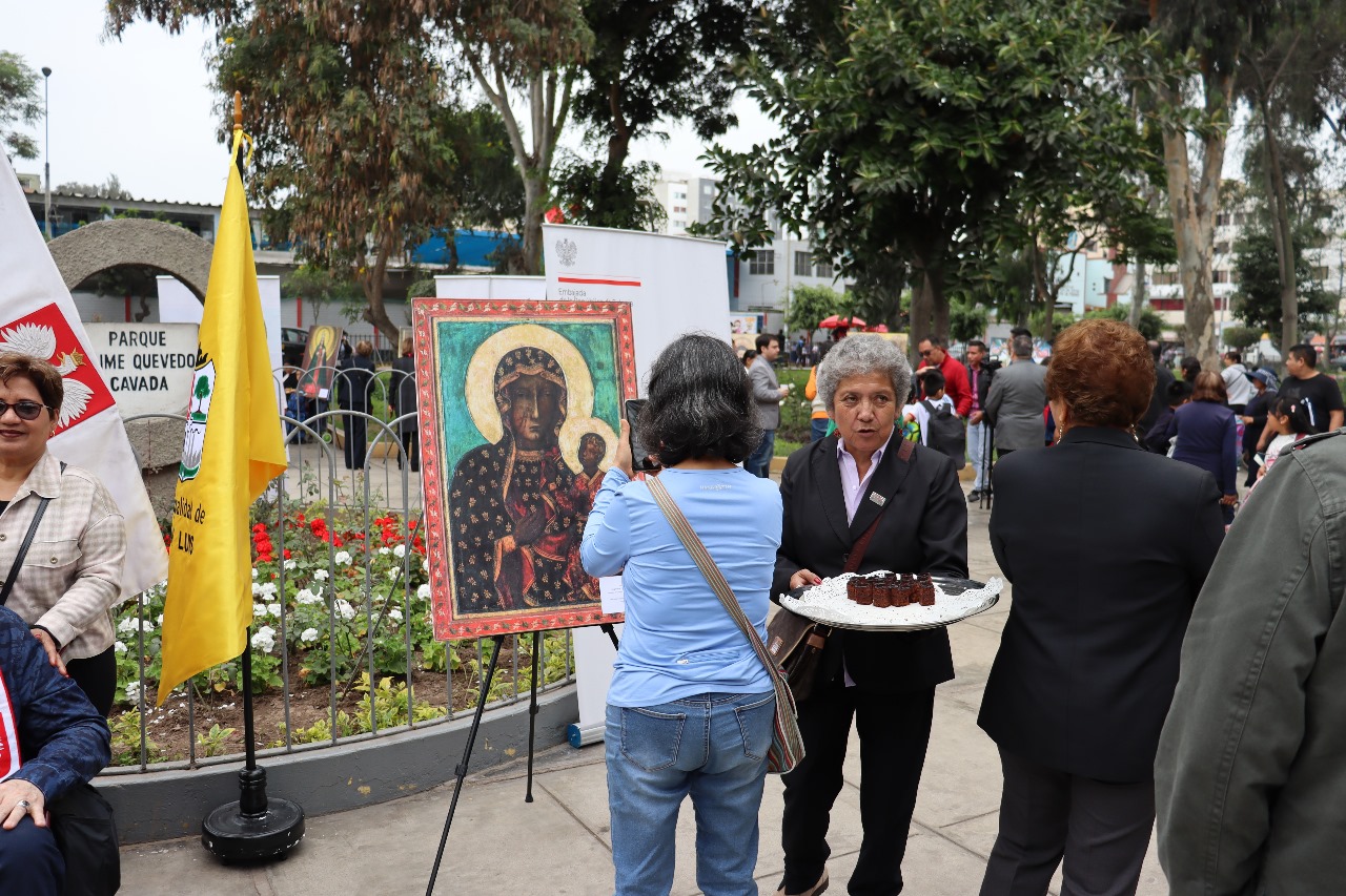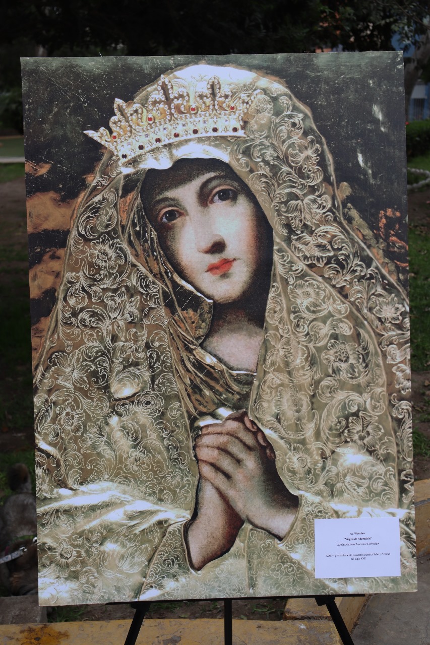 La exposición presenta 30 imágenes de esculturas y pinturas de la Virgen María de los siglos XIII al XX. La exposición se presenta por cortesía de la Embajada de Polonia en Panamá, y después de Lima se trasladará a varias ciudades de Perú y Bolivia.