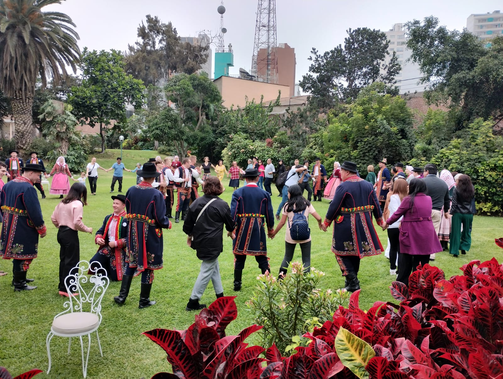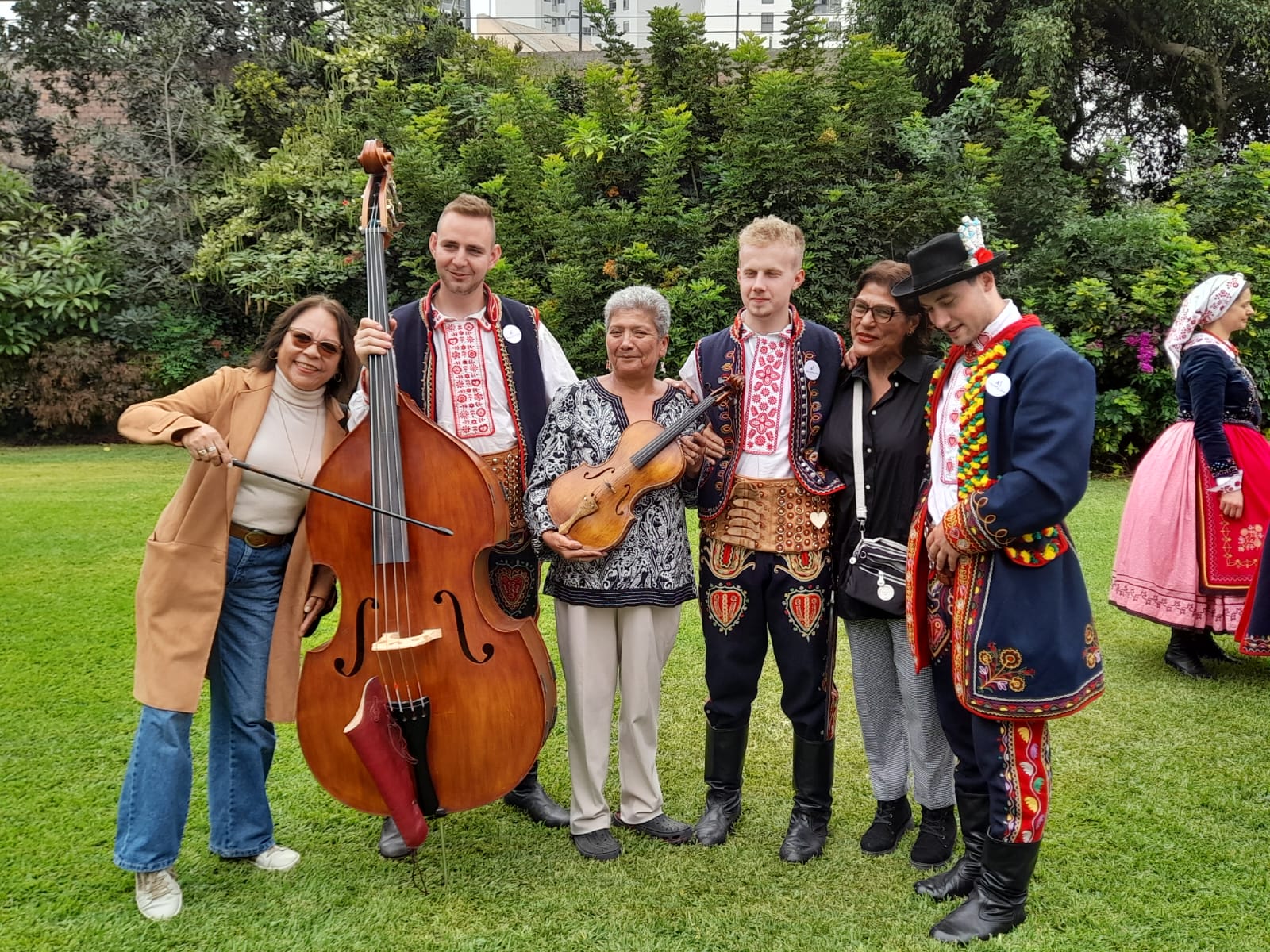 17 czerwca br. Ambasada RP w Limie gościła Zespół Regionalny Mystkowianie, który przyjechał do Peru aby wziąć udział w 𝗫𝐈 𝗙𝗘𝗦𝗧𝗜𝗩𝗔𝗟 𝗜𝗡𝗧𝗘𝗥𝗡𝗔𝗖𝗜𝗢𝗡𝗔𝗟 𝗗𝗘 𝗗𝗔𝗡𝗭𝗔𝗦 𝗙𝗢𝗟𝗞𝗟𝗢𝗥𝗜𝗖𝗔𝗦 𝗬 𝗙𝗨𝗦𝗜𝗢𝗡𝗘𝗦 𝗔𝗡𝗗𝗜𝗡𝗔𝗦 𝗦𝗘𝗠𝗜𝗟𝗟𝗔 𝗙𝗢𝗟𝗞 𝟮𝟬𝟮𝟑. W wydarzeniu wzięli udział liczni reprezentanci Polonii oraz zaprzyjaźnieni Peruwiańczycy.