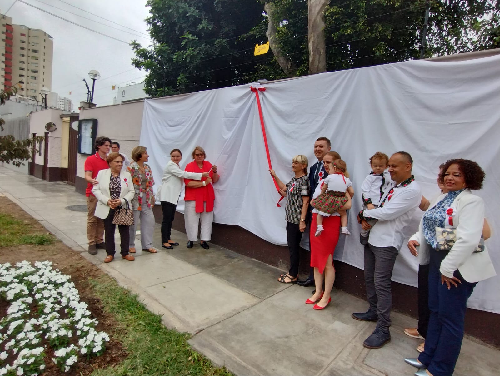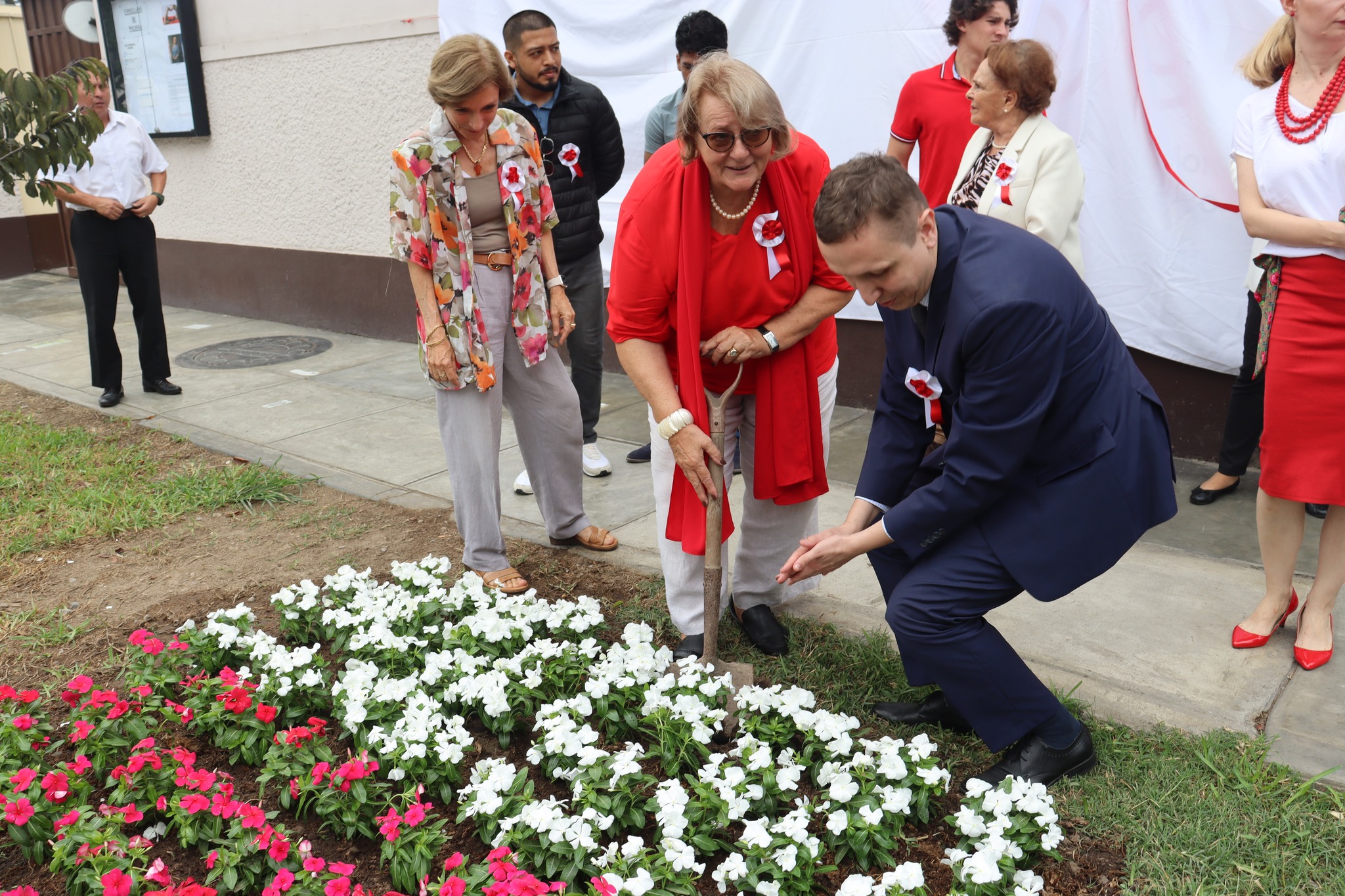 Podczas wydarzenia, Ambasador RP Magdalena Śniadecka-Kotarska posadziła kwiaty w polskich barwach narodowych oraz odsłoniła banner poświęcony 100-ej rocznicy stosunków dyplomatycznych Polska-Peru.