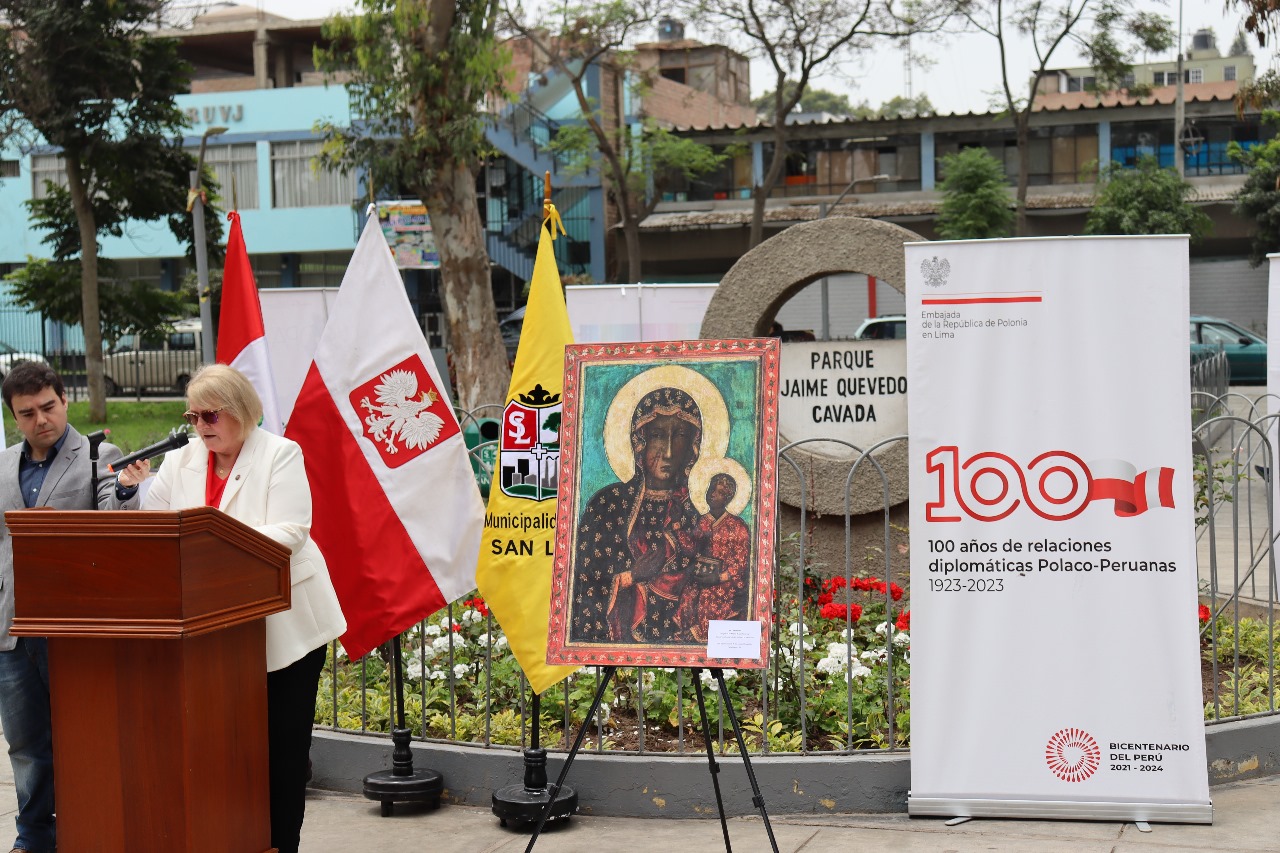 Kolejna uroczystość w ramach obchodów 100-lecia polsko - peruwiańskich relacji dyplomatycznych - tablica upamiętniającą to wydarzenie została przekazana burmistrzowi dzielnicy San Luis i będzie umieszczona w Parku Jaime Quevedo Cavada opodal kościoła, w którym pracują polscy franciszkanie. Uroczystość połączona była z otwarciem bardzo gorąco przyjętej wystawy przybliżającej historię oraz oblicza kultu maryjnego w Polsce .
