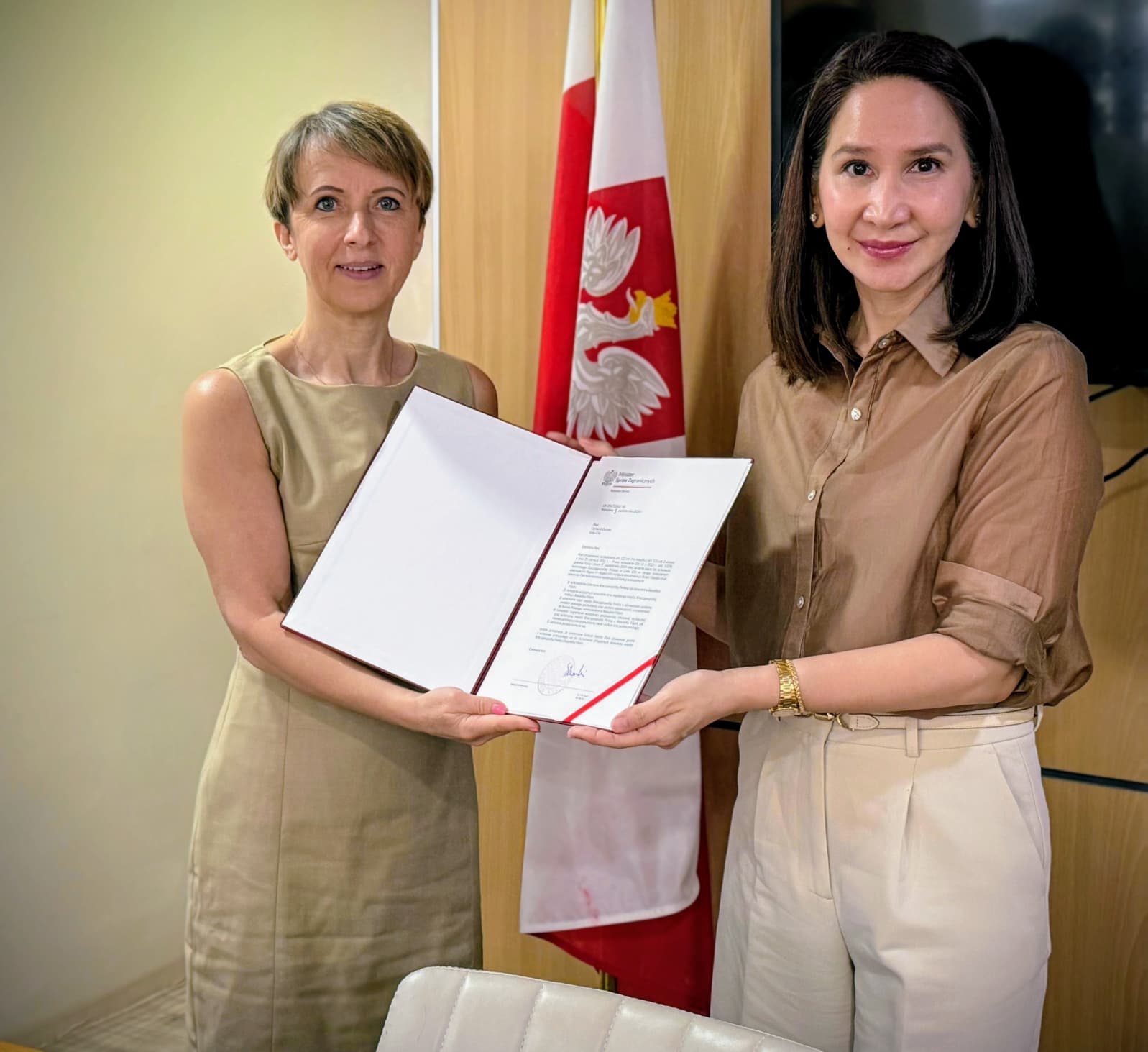 The Honorary Consul in Cebu, Ms. Carmel II Durano, is now responsible for Region VI and Region VII, with the exception of the provinces of Bohol and Siquijor. During the official ceremony, the Chargé d’affaires a.i. of the Republic of Poland, Ms. Katarzyna Wilkowiecka, accompanied by the Consul of the Republic of Poland, Mr. Sebastian Kmita, presented the letter of appointment authorizing the performance of duties within the new consular district. The Honorary Consulate in Cebu, under the leadership of Ms. Carmel II Durano, aims not only to provide support to Polish citizens but also to intensify bilateral relations in one of the country's most important economic hubs.