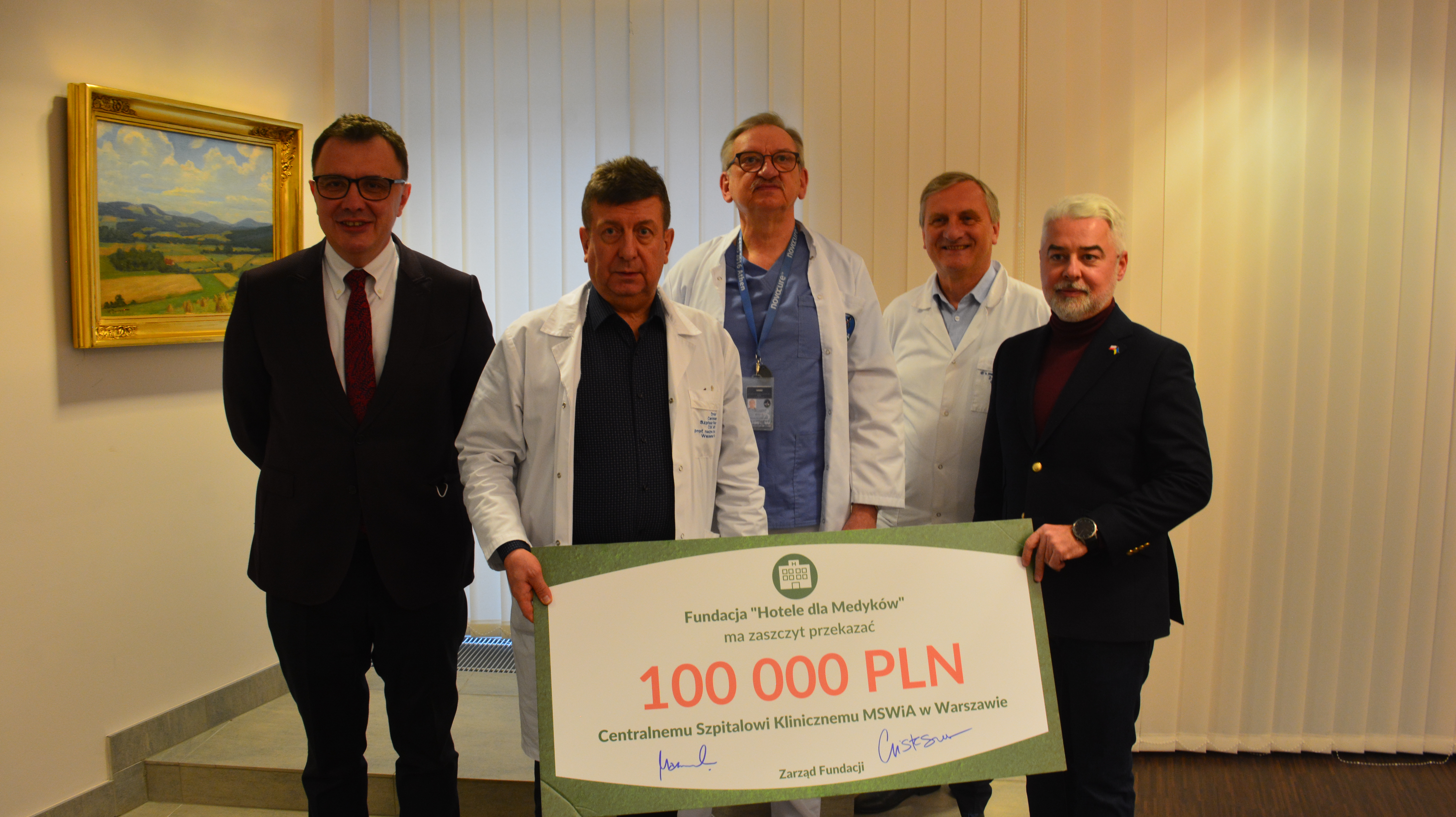 Dziś otrzymaliśmy darowiznę w wysokości 100 tys. zł od Fundacji „Hotele dla Medyków” Polski Holding Hotelowy - środki te zostaną przeznaczone na zakup sprzętu na blok operacyjny Kliniki Neurochirurgii CSK MSWiA.