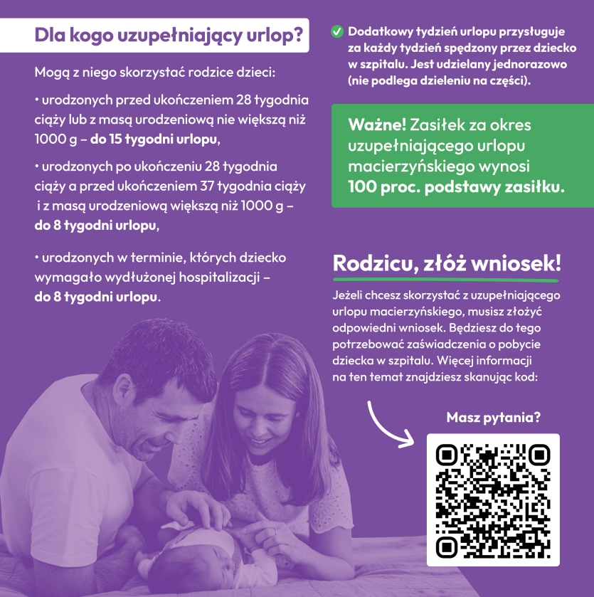 Ministerstwo Rodziny, Pracy i Polityki Rodzinnej we współpracy z Ministerstwem Zdrowia przypominają nowy zapis w Kodeksie Pracy dotyczący uzupełniającego urlopu macierzyńskiego.