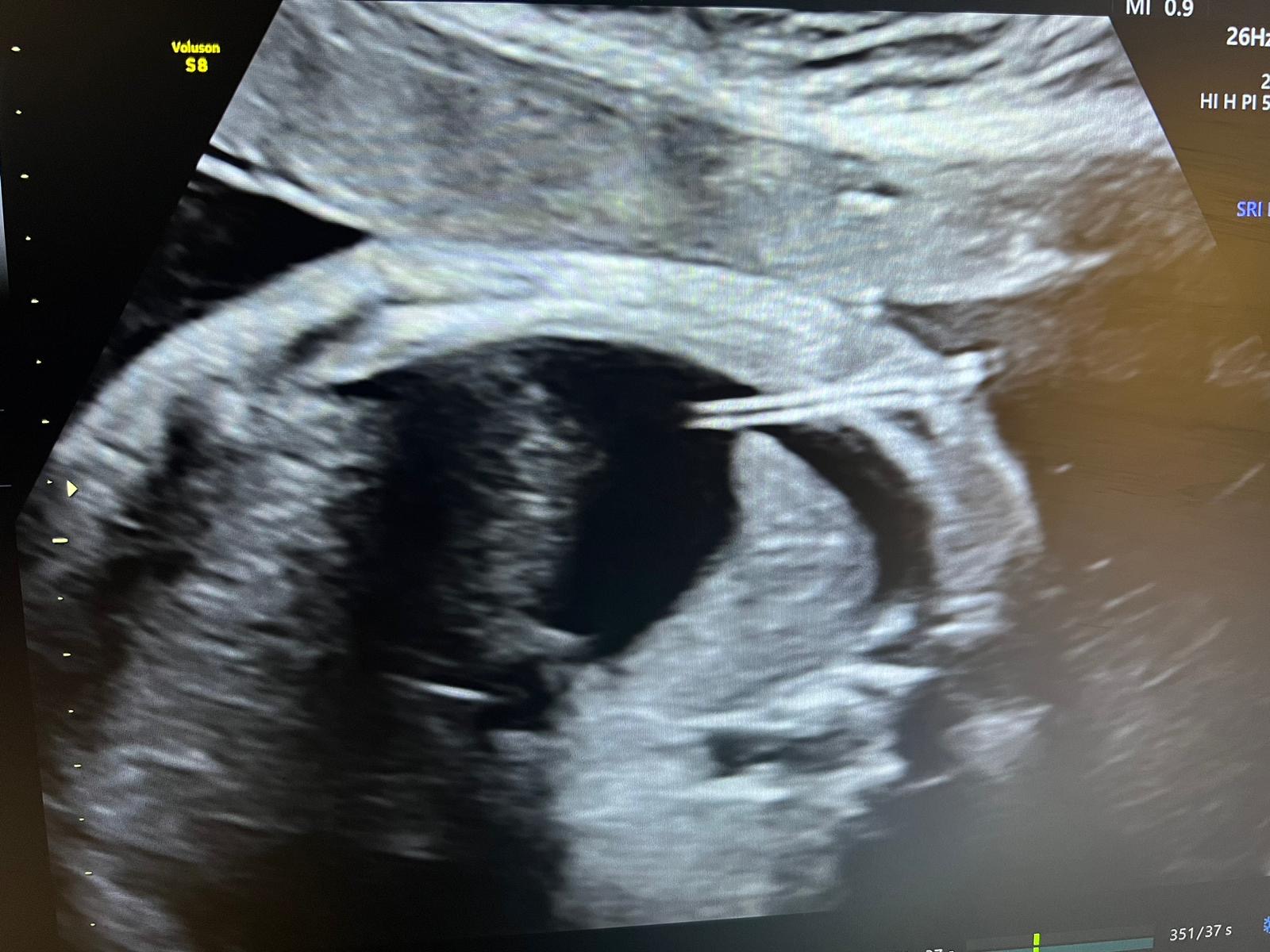 Załączone zdjęcia pokazują zabieg (1), który wykonał zespół w składzie dr n. med. Michał Lipa i prof. dr hab. Mirosław Wielgoś oraz obrazy ultrasonograficzne, na których uwidoczniono sytuację wyjściową (2), założony shunt (3) i stan 4 dni po zabiegu (4). Doraźny efekt jest - jak widać na zdjęciach - bardzo dobry, w związku z czym Pacjentkę wypisano do domu. Z niecierpliwością oczekujemy na kontrolę, która odbędzie się w naszej Poradni Patologii Ciąży już za tydzień.