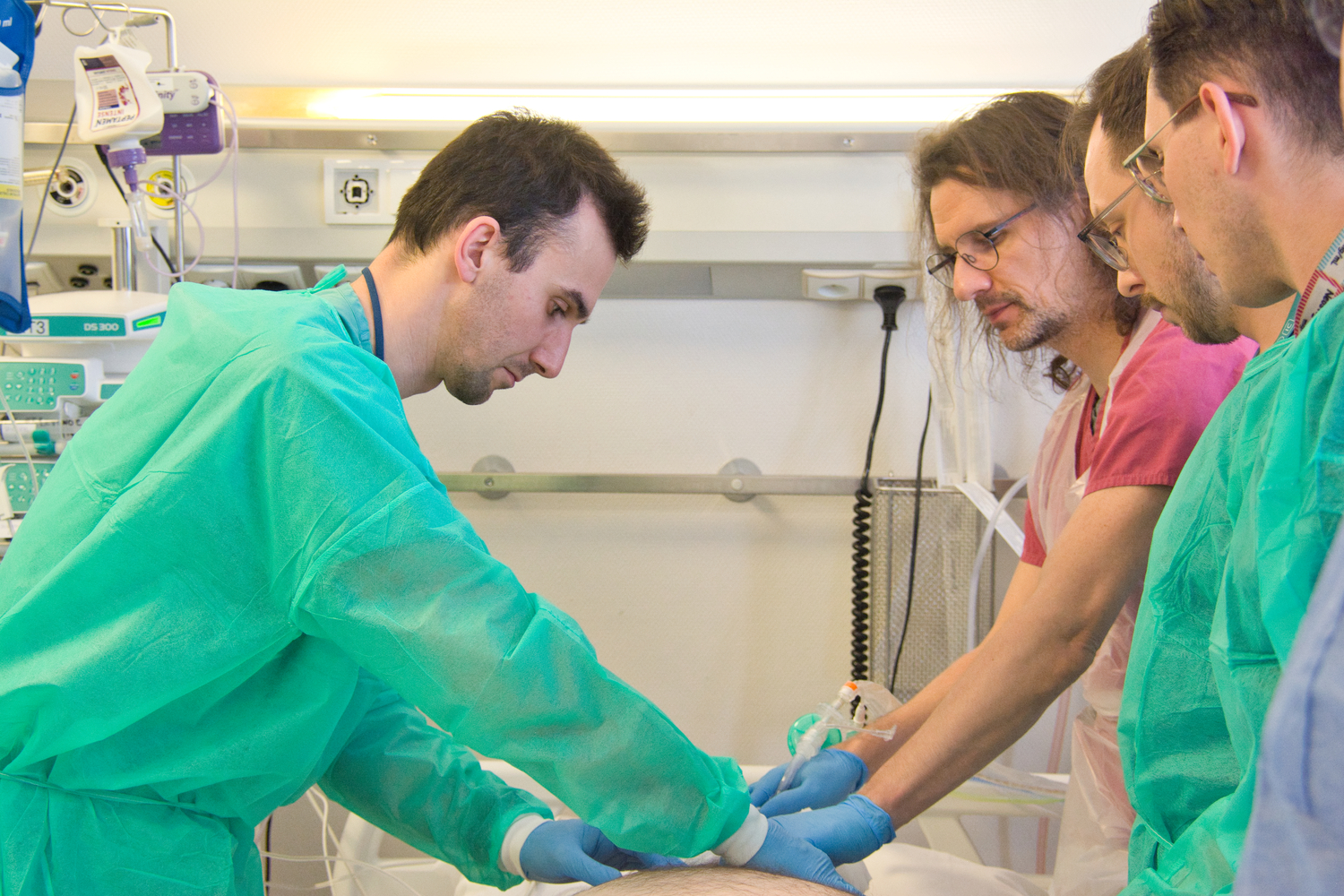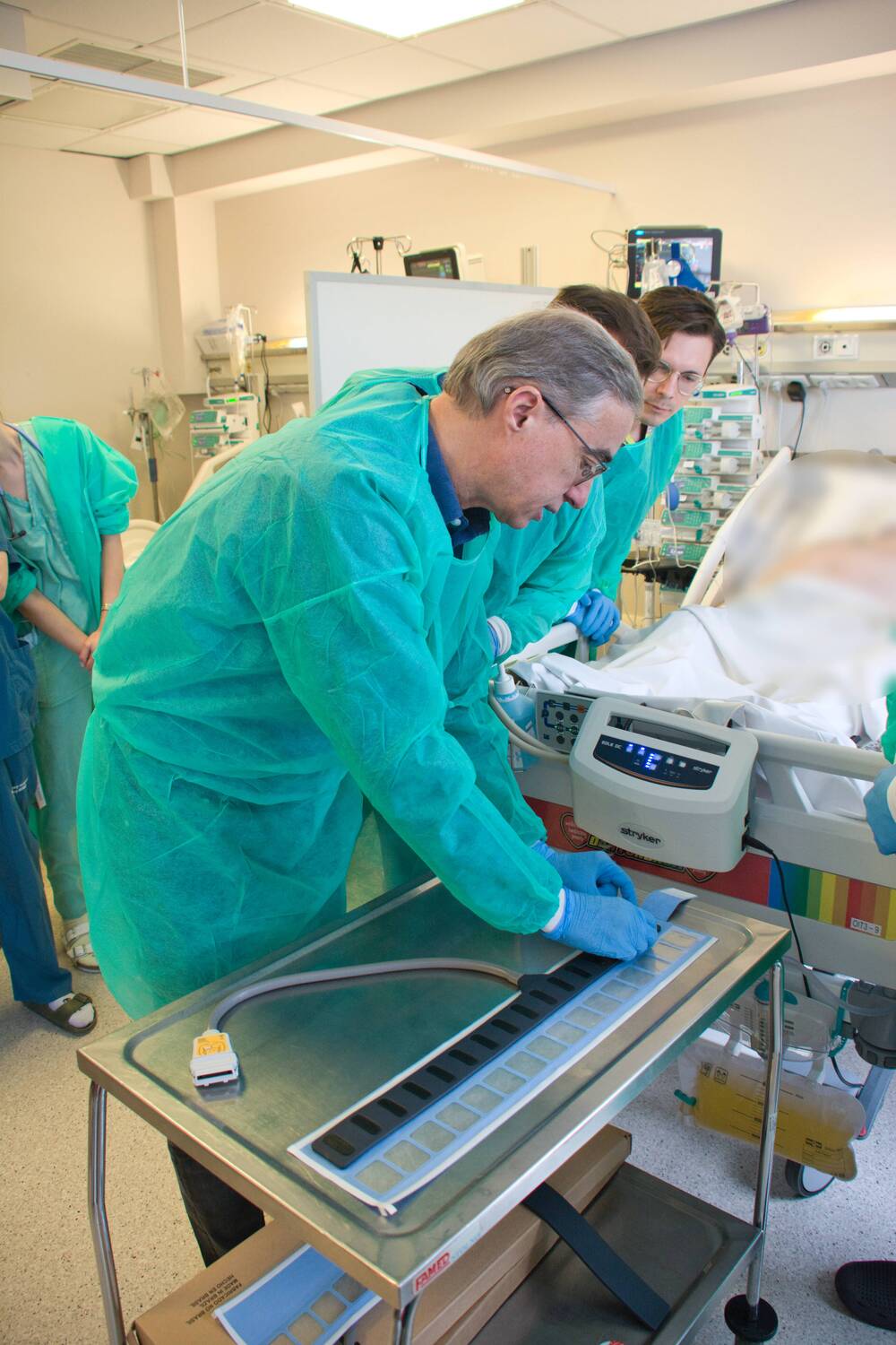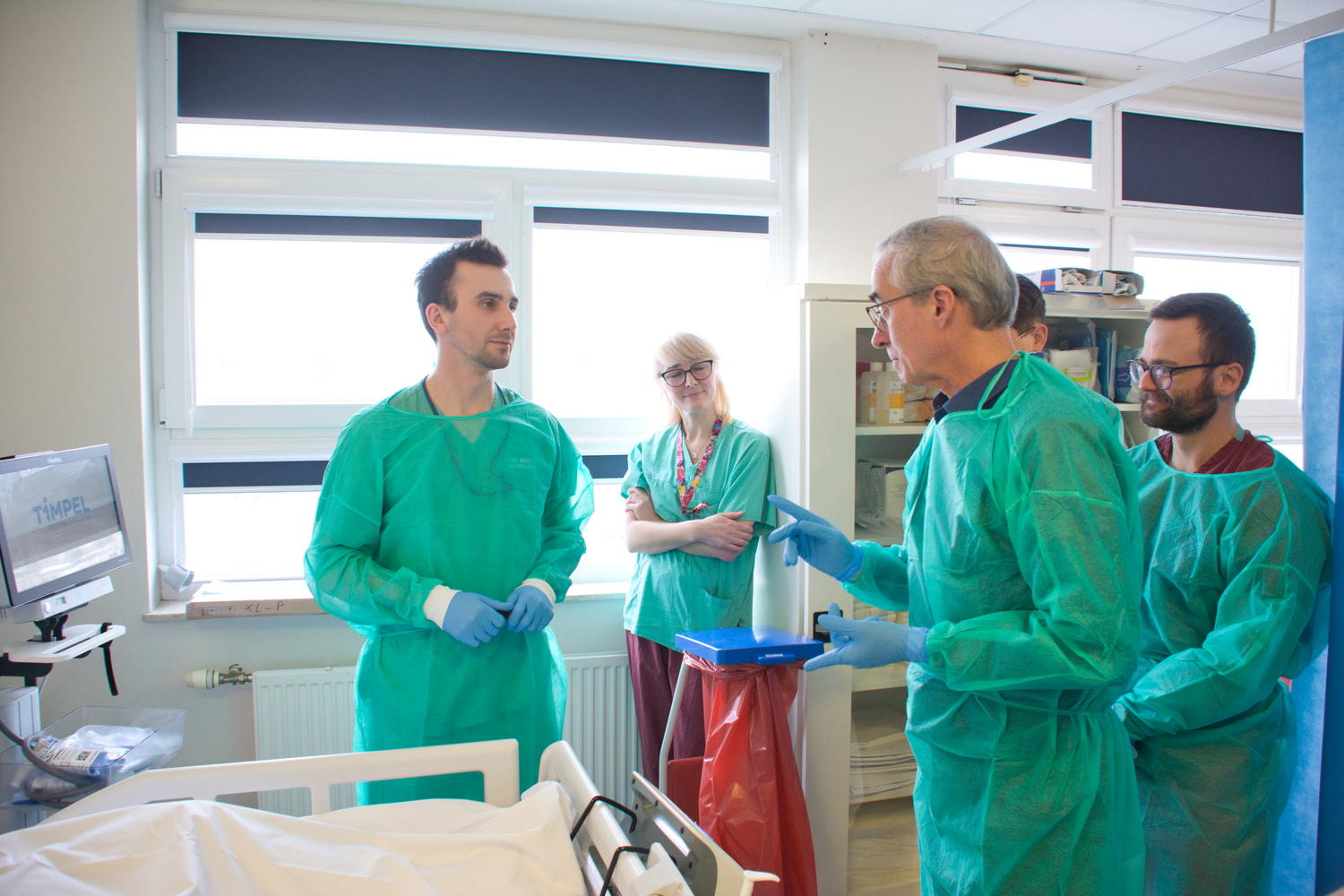 Po wykładzie w Klinice Anestezjologii i Intensywnej Terapii odbyło się szkolenie w zakresie podłączania do EIT i monitorowania pacjenta, a także wyznaczania optymalnej wentylacji.