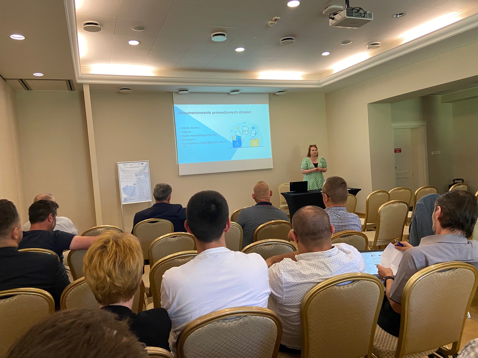 Jako ostatni prelegent wystąpiła dr Aleksandra Lusawa z prezentacją odnosząca się do obowiązków Partnerów Projektu w zakresie działań informacyjno-promocyjnych i komunikacyjnych, podkreślając rolę i znaczenie efektywnej komunikacji oraz konieczności promocji działań projektowych zgodnie z obowiązującymi wytycznymi.