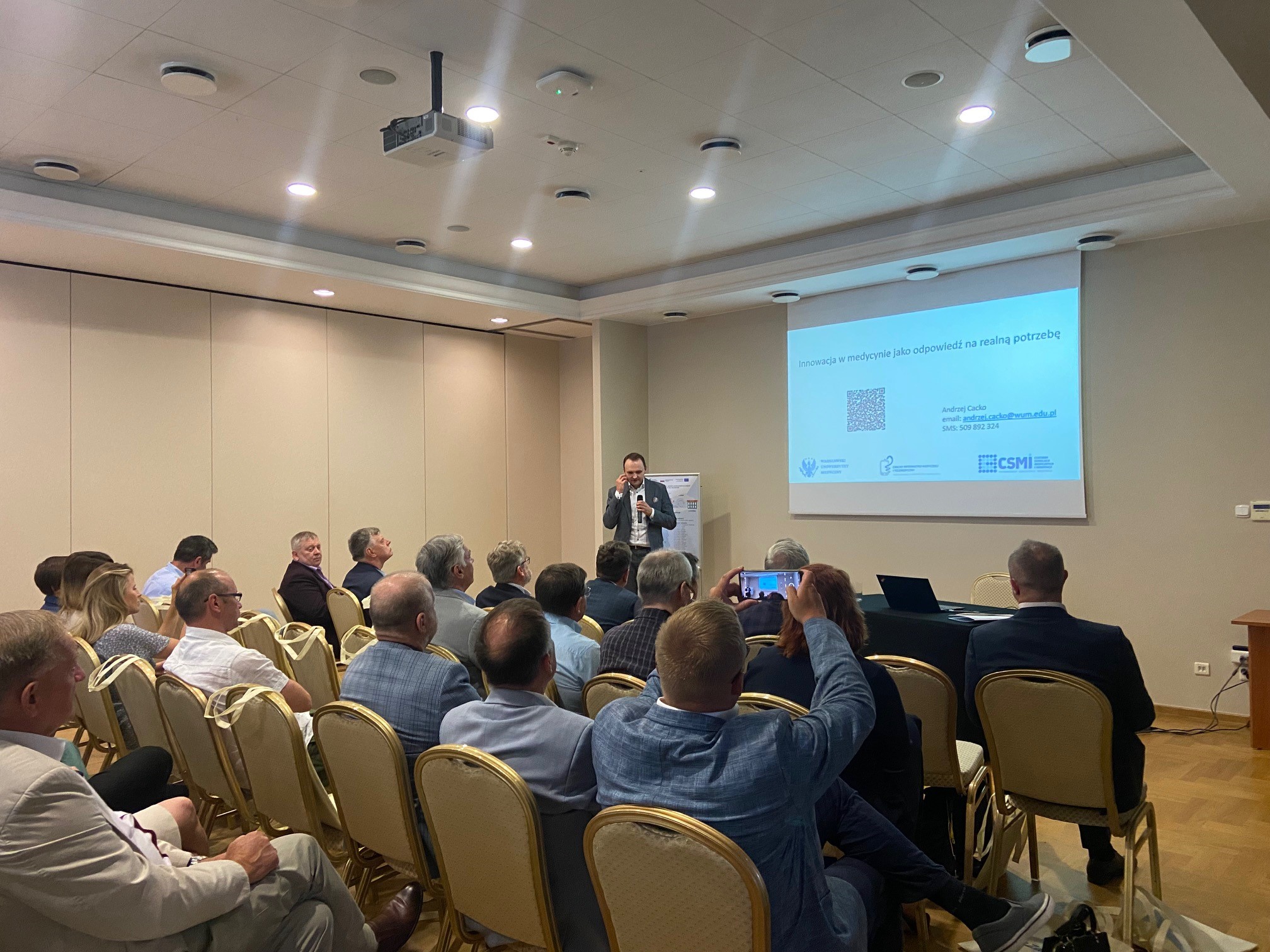 Następnie dr hab. Andrzej Cacko z Zakładu Informatyki Medycznej i Telemedycyny WUM wygłosił referat pt. „Innowacja w medycynie jako odpowiedź na realna potrzebę”, podczas którego przedstawił koncepcje wspierania kadry medycznej poprzez wykorzystanie rozwiązań cyfrowych. Po krótkiej przerwie można było wysłuchać wykładu nt. identyfikacji i potwierdzania tożsamości na podstawie doświadczeń CPD MSWiA, wygłoszonego przez Pana Pawła Głośniewskiego, Zastępcę Dyrektora Centrum Personalizacji Dokumentów MSWiA, który przedstawił możliwości wpierania procesu identyfikacji użytkowników systemu, co znacznie podnosi bezpieczeństwo danych, w tym danych medycznych. Pierwszy dzień zakończył się wystąpieniem Pana Mariusza Kujawskiego, członka Zarządu Polskiej Wytwórni Papierów Wartościowych, na temat: „Projekty informatyczne o znaczeniu strategicznym dla państwa”, który podkreślił rolę zarządzania w systemach IT.