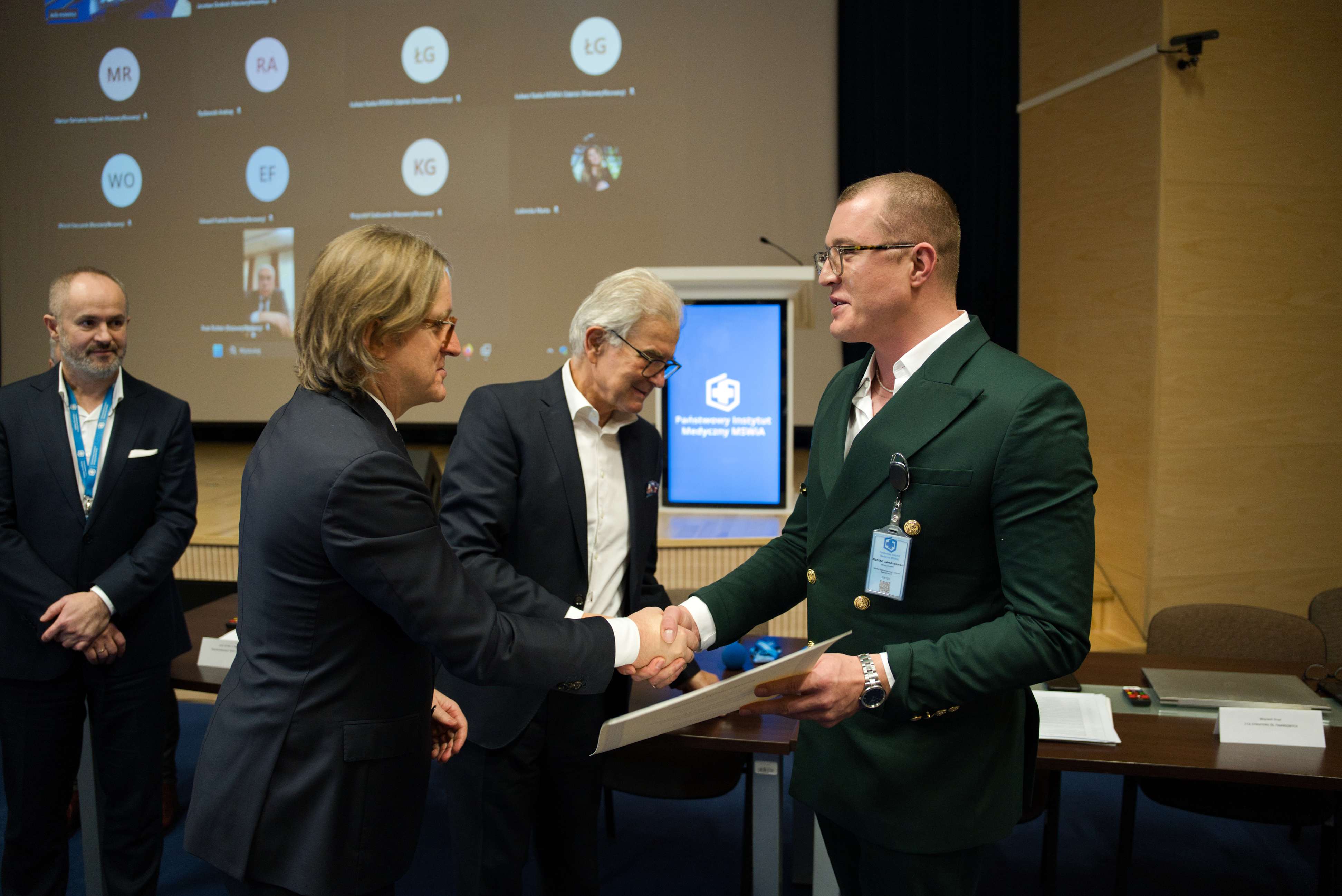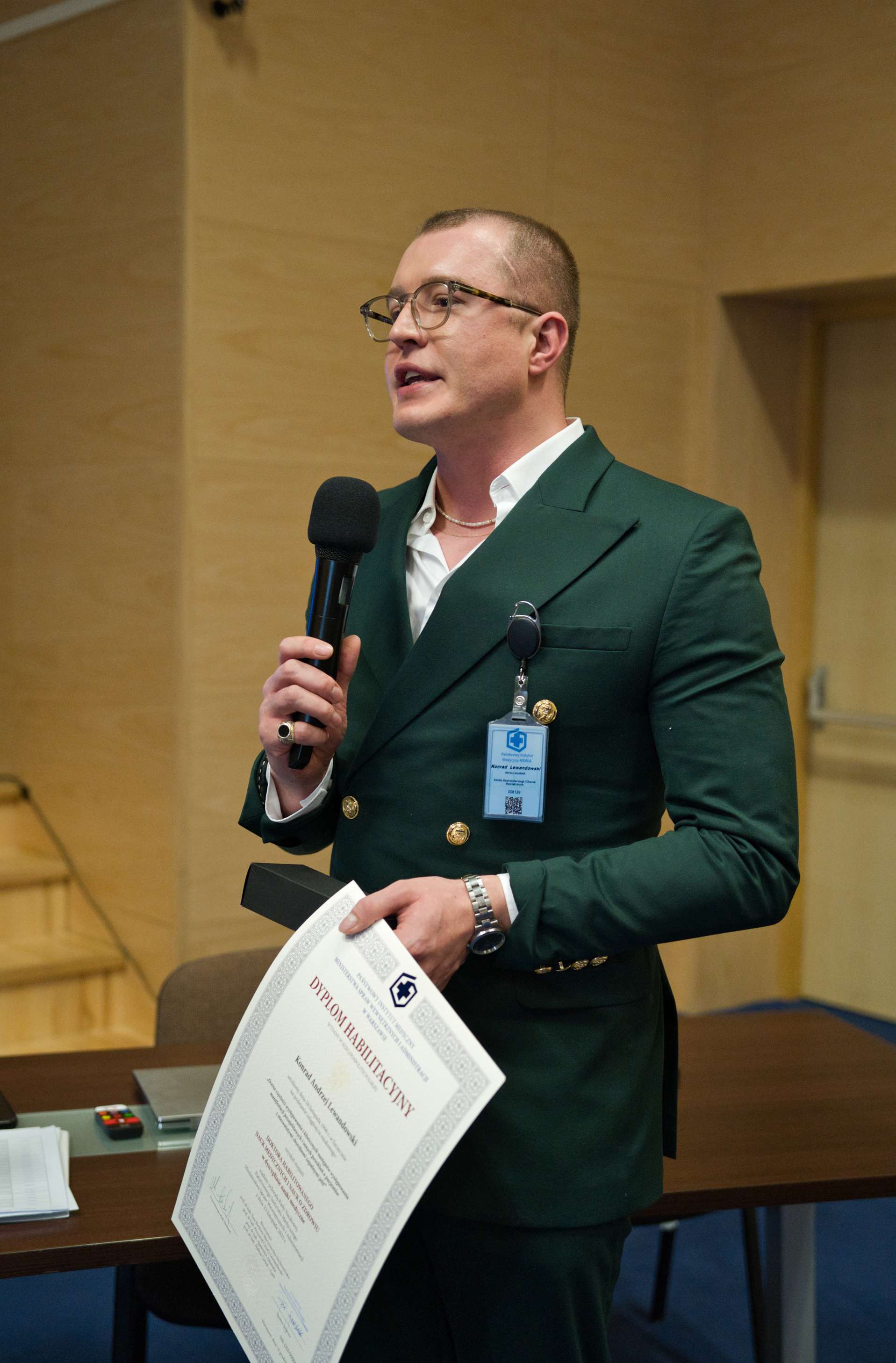 Z wielką dumą i radością informujemy, że 15 grudnia, podczas uroczystego, świątecznego posiedzenia Rady Naukowej Państwowego Instytutu Medycznego MSWiA, wręczono dyplom potwierdzający nadanie stopnia doktora habilitowanego w dziedzinie nauk medycznych i nauk o zdrowiu, w dyscyplinie nauki medyczne, Panu dr. hab. n. med. Konradowi Lewandowskiemu.