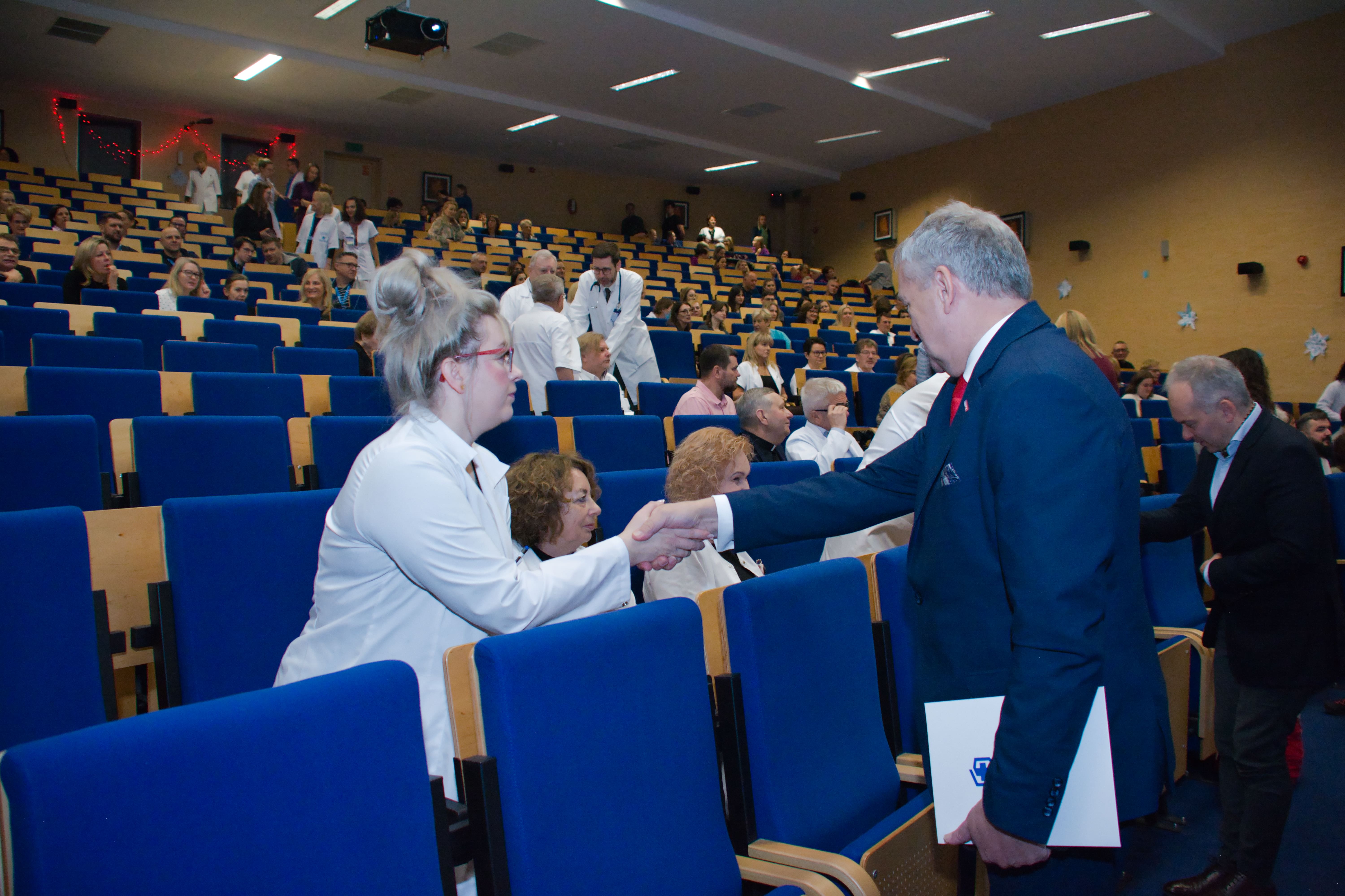 W wyjątkowy, przedświąteczny dzień mury naszego szpitala rozświetlił blask świątecznych dekoracji, a wnętrza wypełniły się ciepłą, rodzinną atmosferą, której towarzyszyła coroczna Wigilia pracowników placówki. Było to wydarzenie szczególne, które zgromadziło lekarzy, pielęgniarki, personel pomocniczy, pracowników biurowych i wszystkich tych, którzy na co dzień wspólnie troszczą się o zdrowie i życie pacjentów. Swoją obecnością zaszczycili nas przedstawiciele Ministerstwa Spraw Wewnętrznych i Administracji - wiceminister Wiesław Szczepański i Aneta Grunwald-Fitas, dyrektor Departamentu Zdrowia MSWiA.