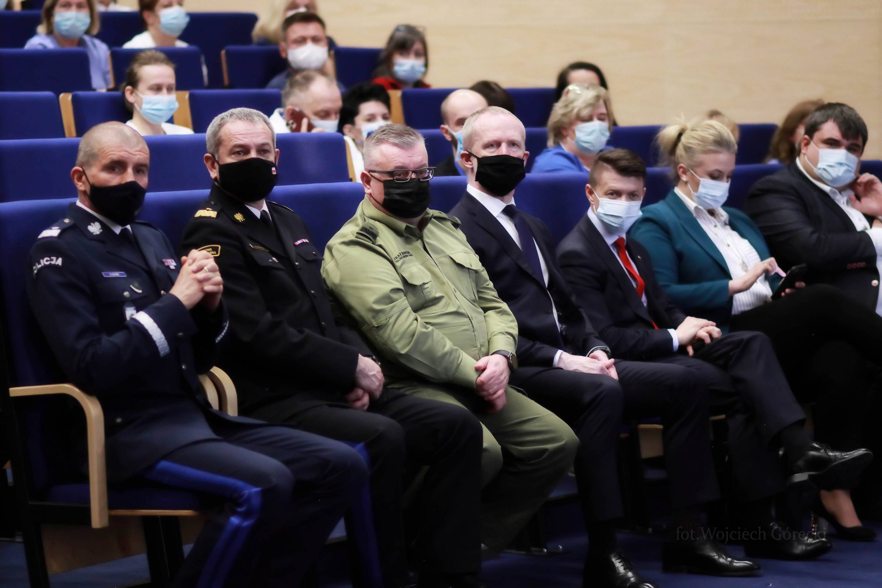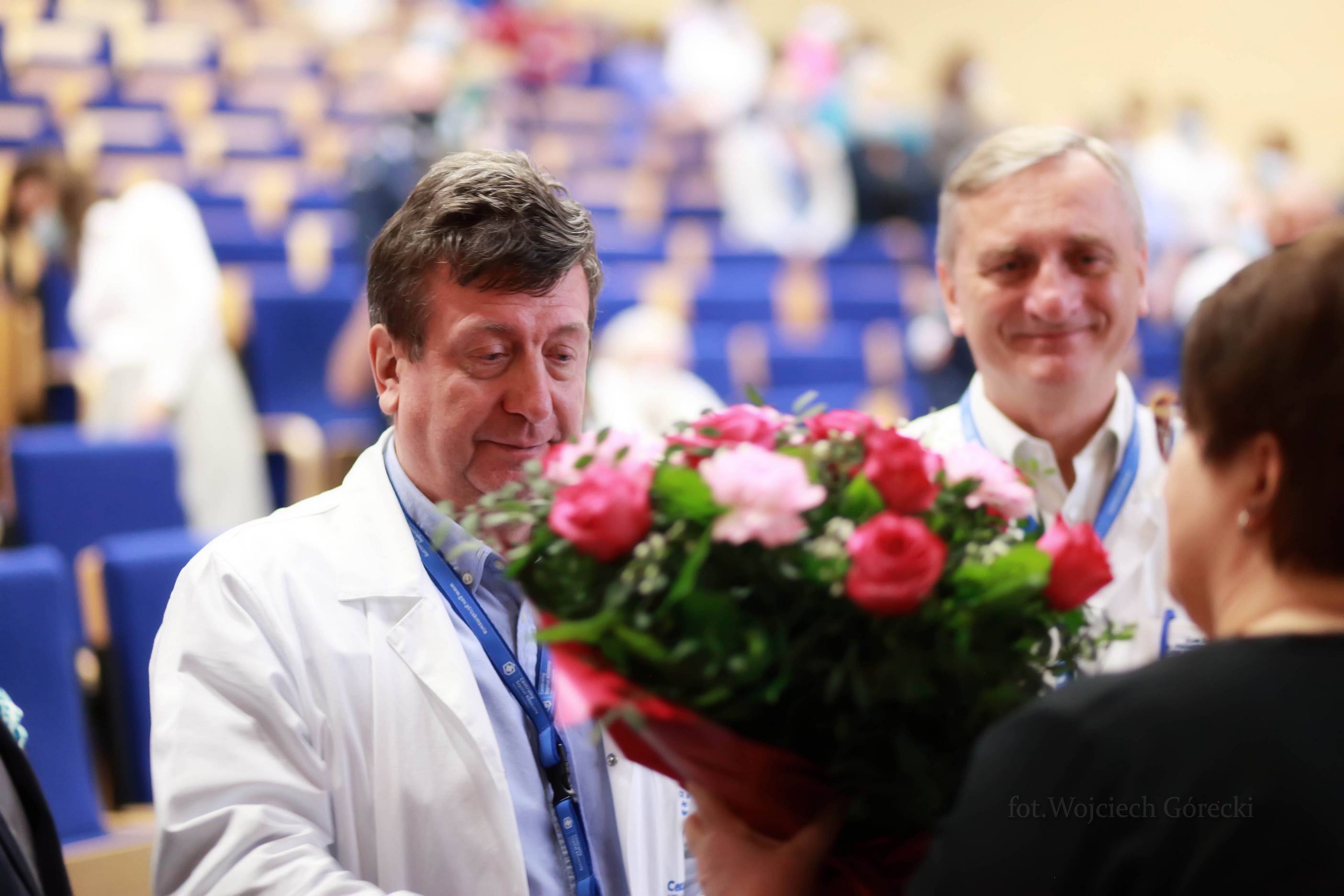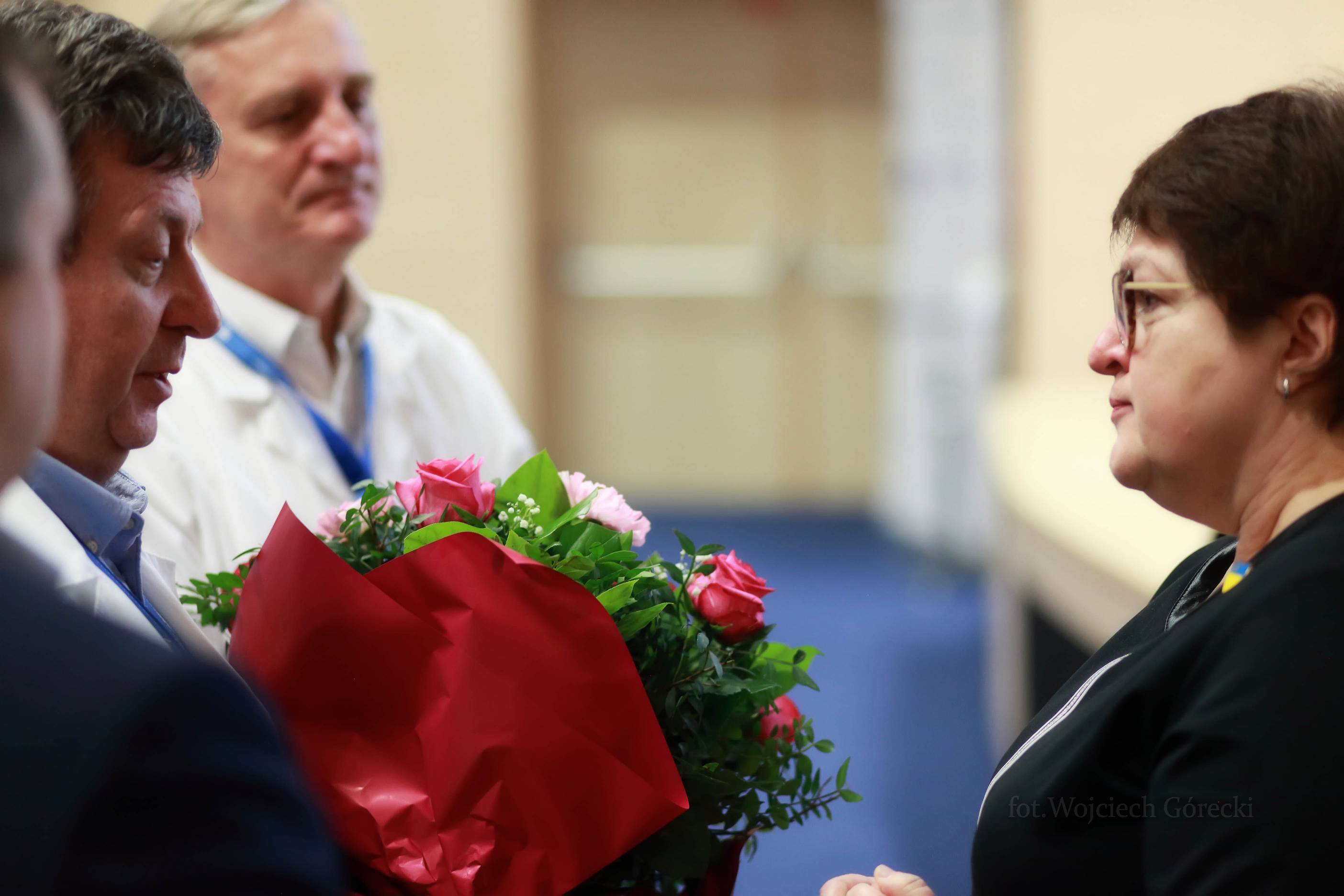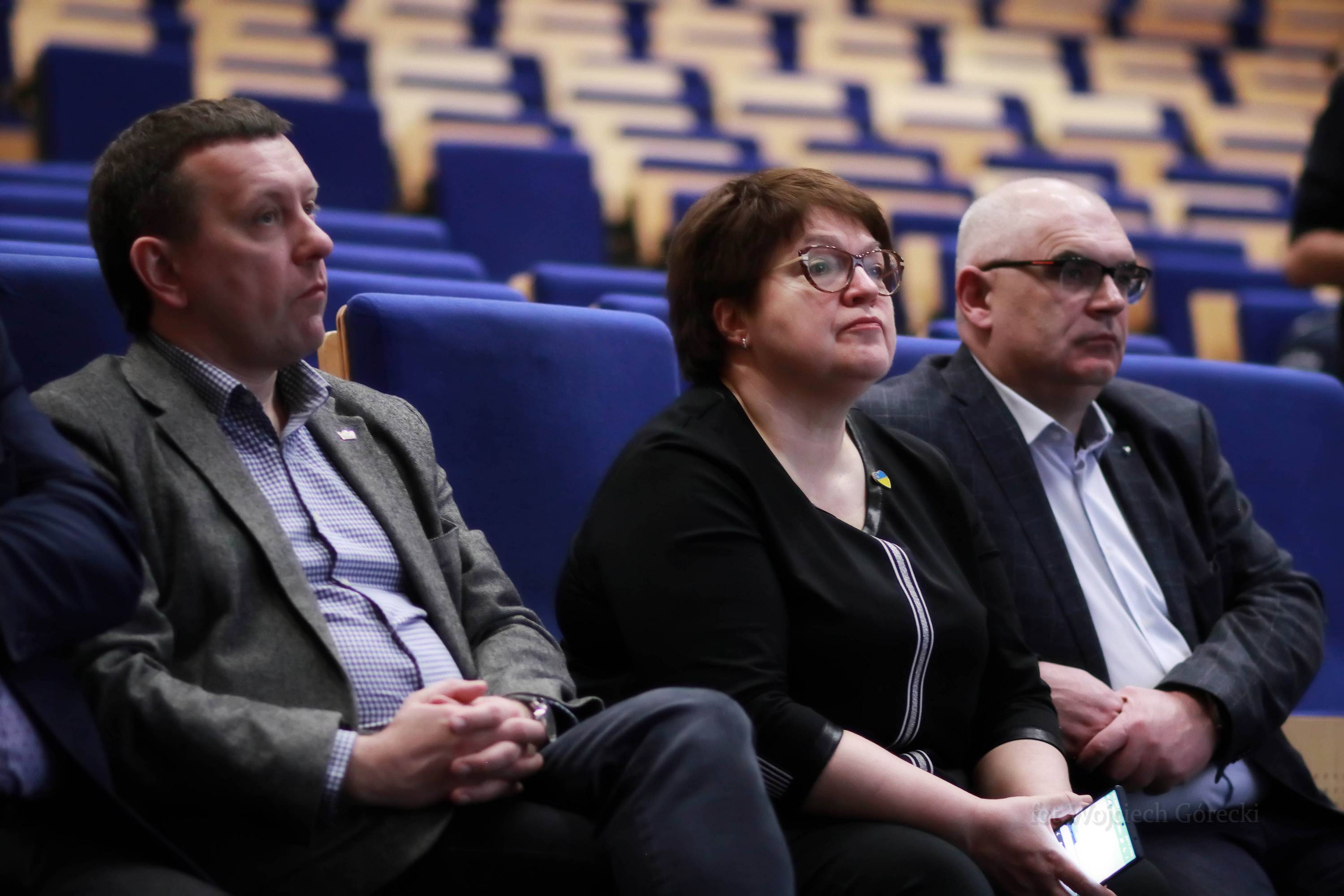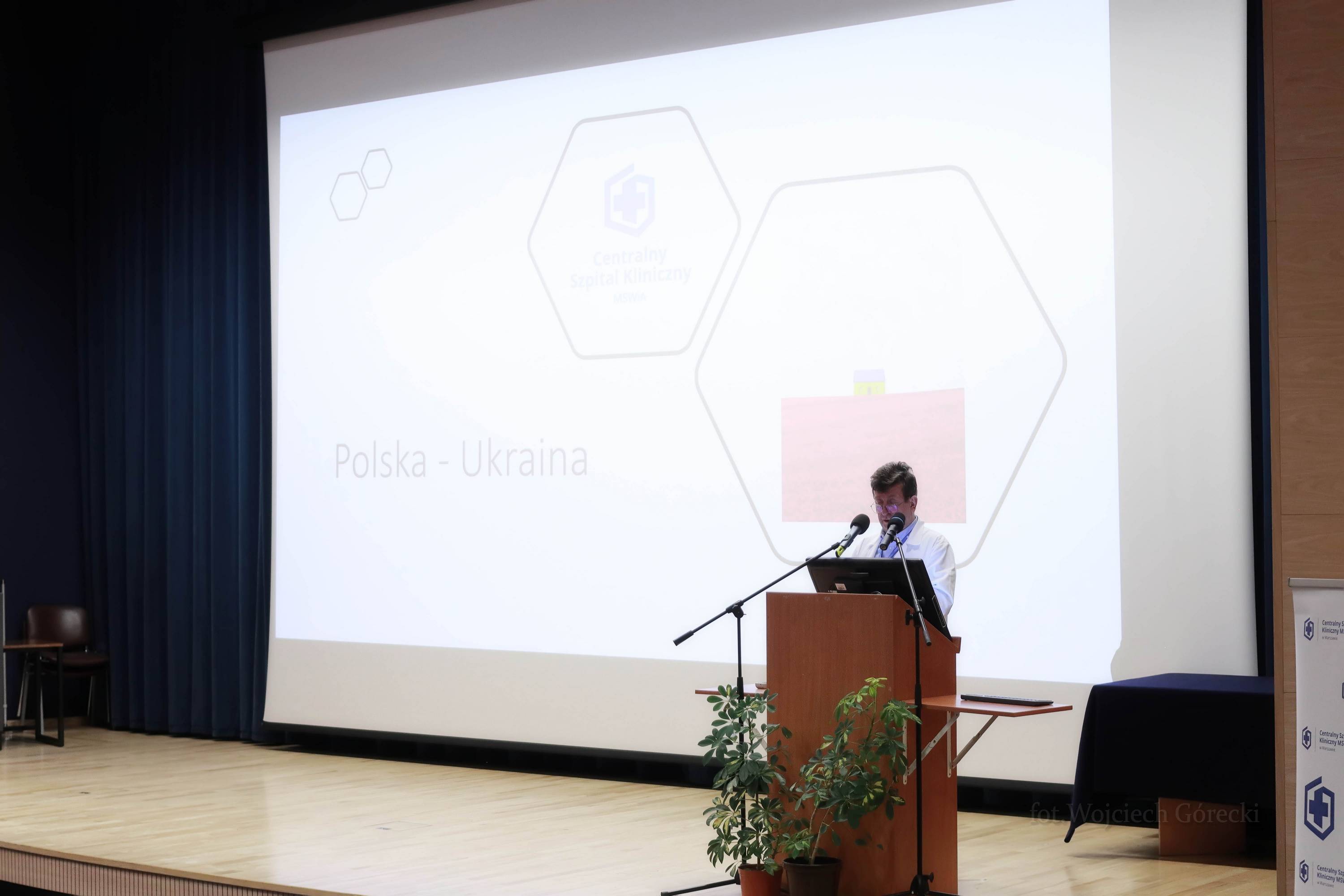 Prof. Piotr Szymański, dr Konstanty Szułdrzyński i Komisarz Sławomir Butkiewicz wygłosili prezentację na temat pomocy, którą szpital niósł Pacjentom z Ukrainy od chwili rozpoczęcia konfliktu zbrojnego oraz perspektyw dalszego zacieśniania współpracy pomiędzy polską i ukraińską ochroną zdrowia.