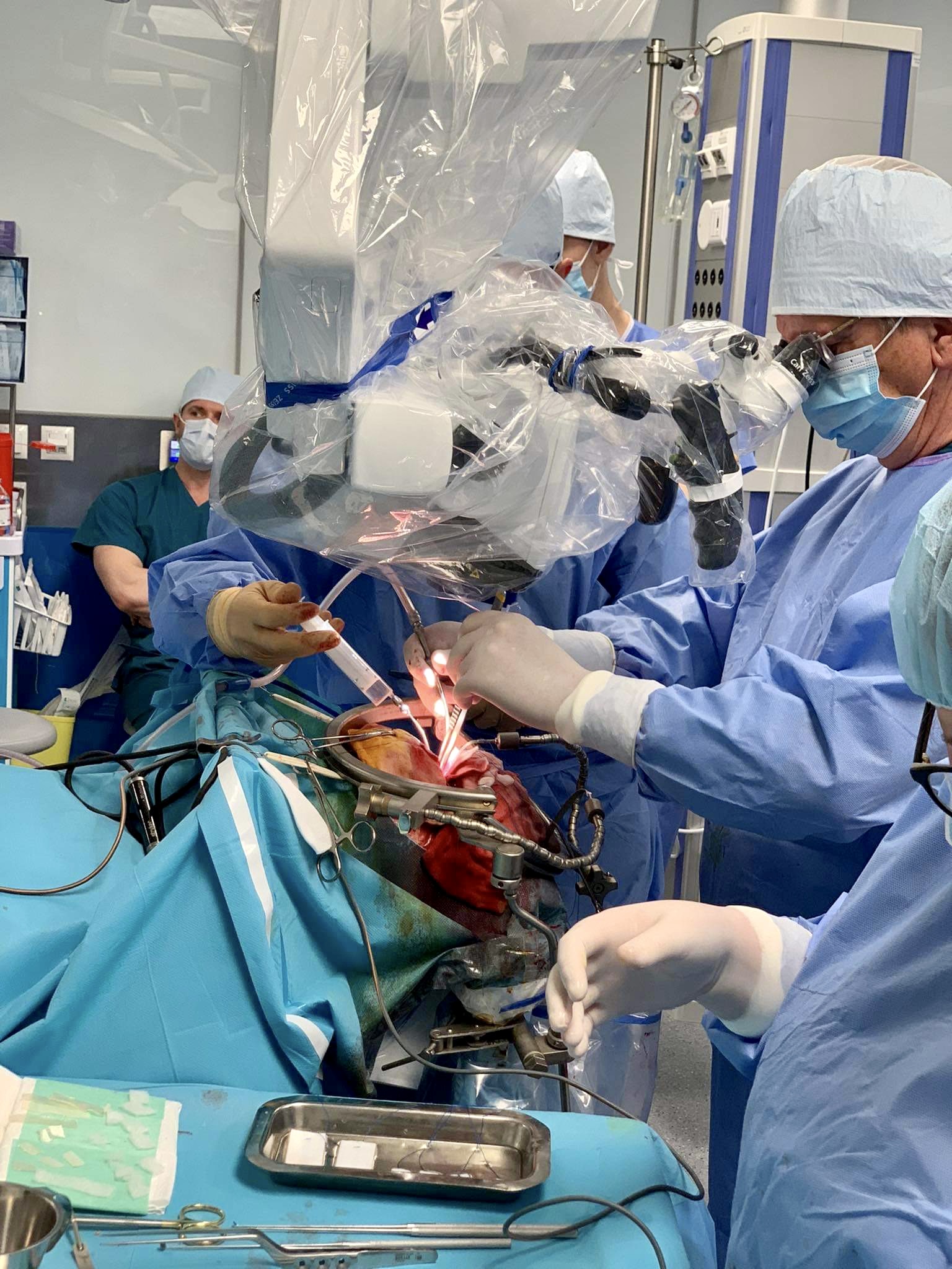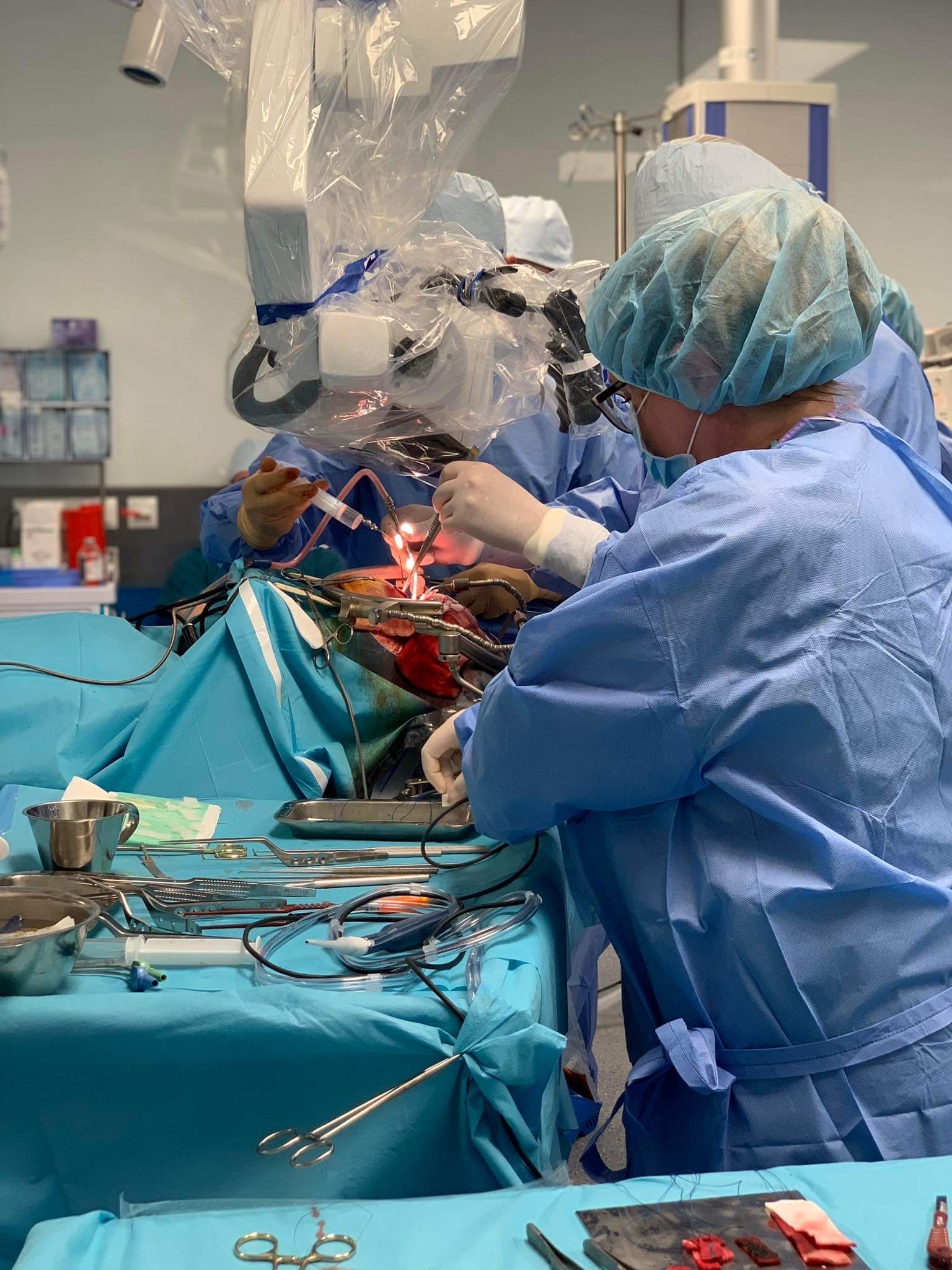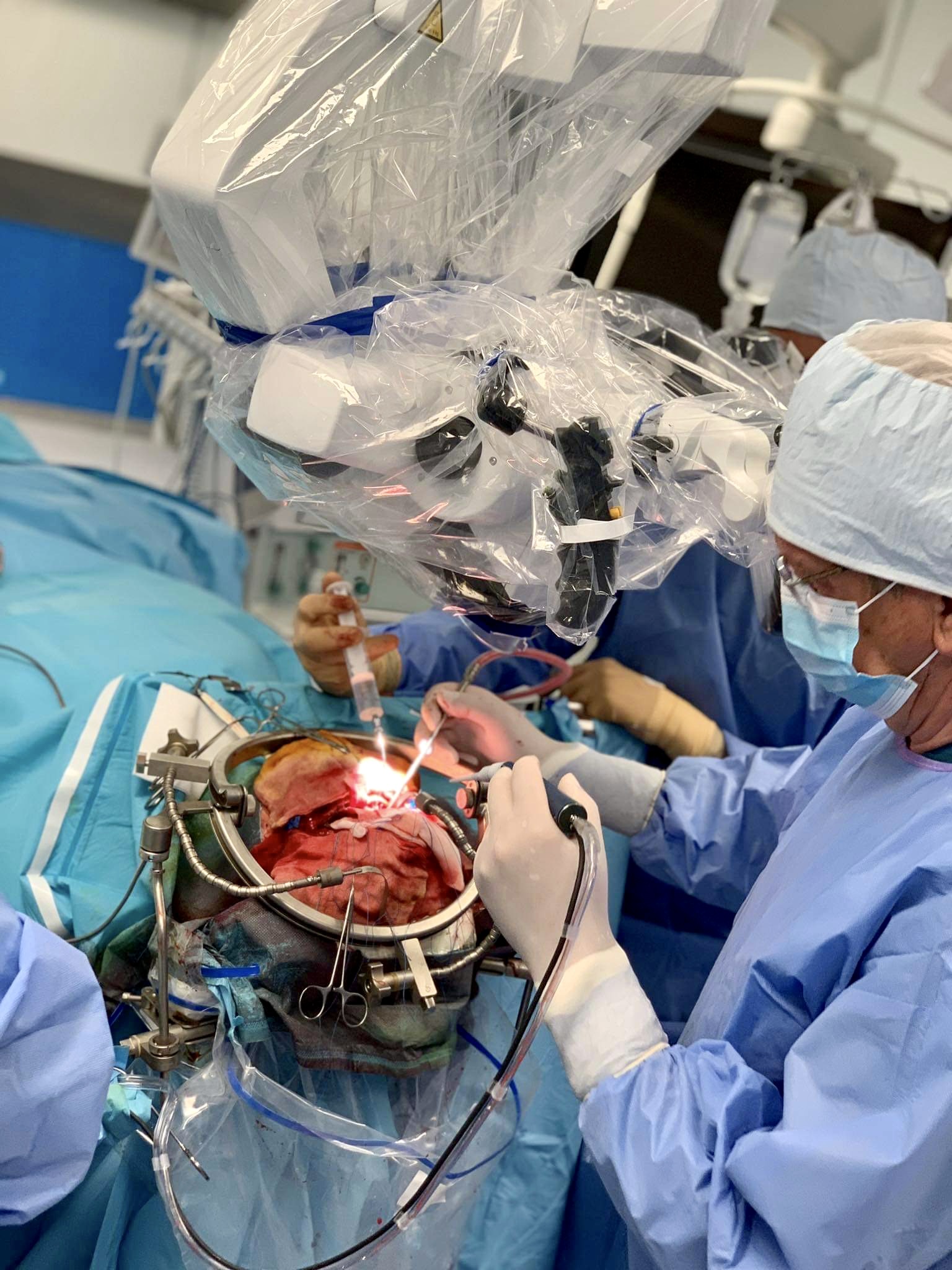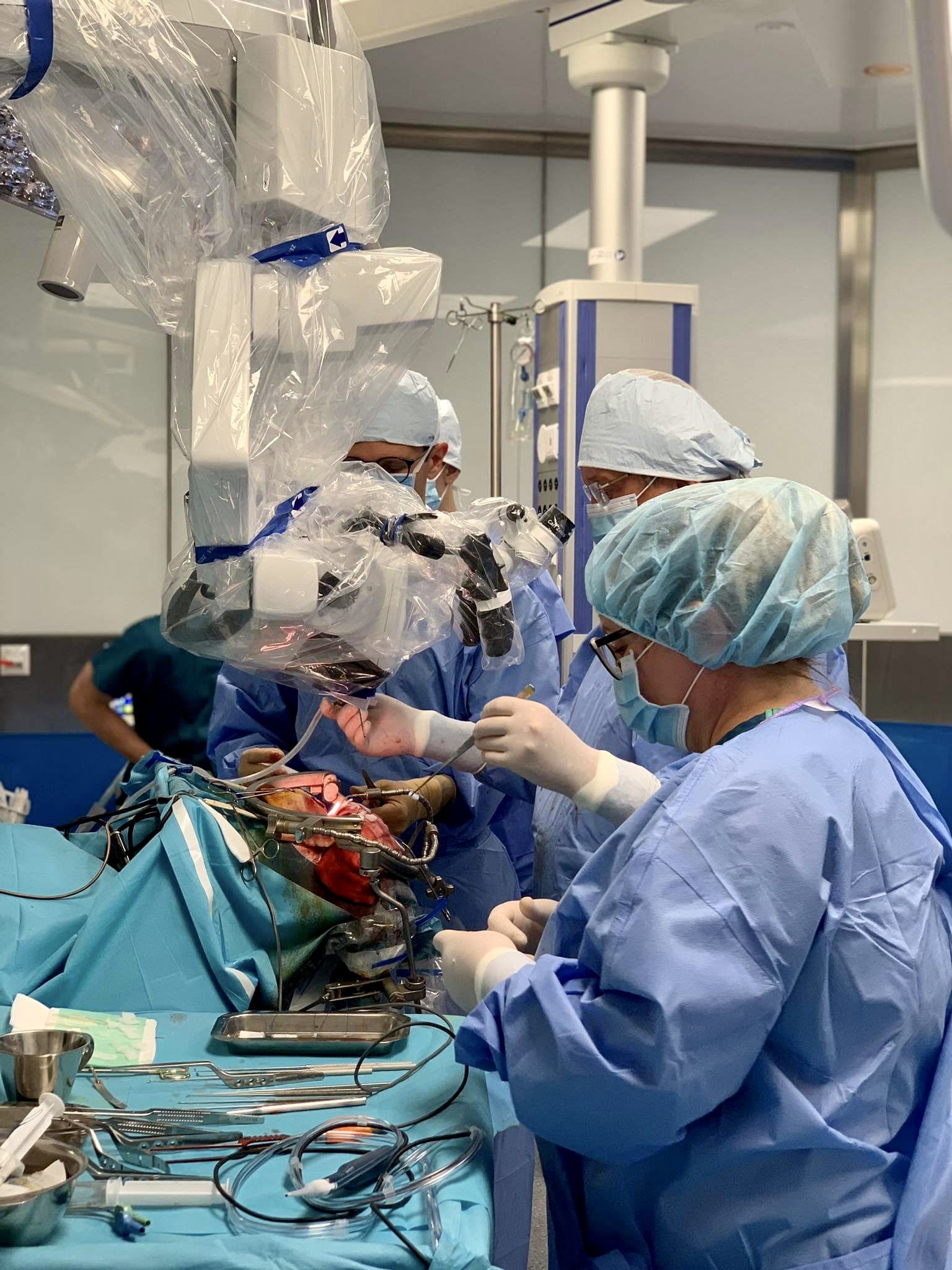 Przedstawiamy Państwu zespół Kliniki Neurochirurgii podczas pracy - zabiegu usunięcia guza mózgu oraz zapraszamy do relacji zdjęciowej z operacji guza mózgu przeprowadzonej w tym miesiącu, wykonanej przez dr n. med. Bogusława Kostkiewicza - Kierownika Kliniki Neurochirurgii i jego zespół.