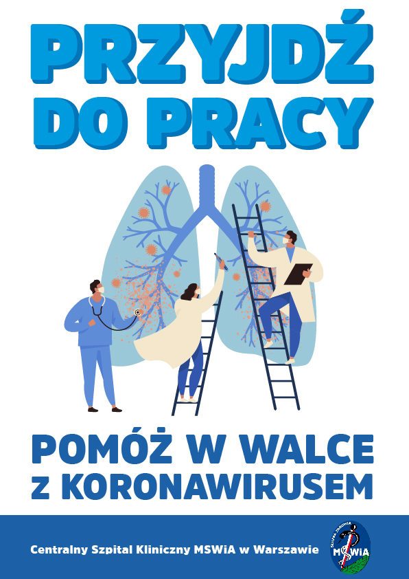 Zapraszamy wszystkich profesjonalistów chętnych do pracy w CSK MSWiA w okresie pandemii (lekarzy, pielęgniarki, sanitariuszki, ratowników medycznych) do kontaktu z Działem Zasobów Ludzkich mailowo na adres zofia.felczak@cskmswia.pl