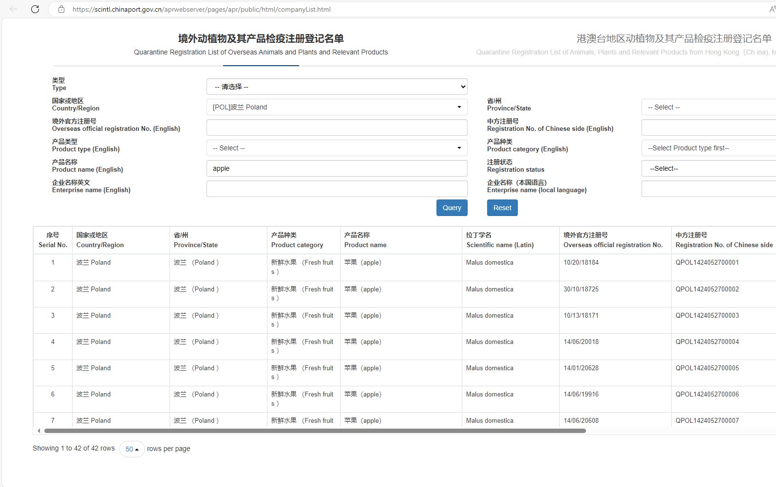 Wymagane przez stronę chińską dane zainteresowanych podmiotów, które wcześniej dokonały wpisu do prowadzonego przez PIORiN tzw. „rejestru eksporterów”, zostały przez Inspekcję wprowadzone do nowego szablonu, udostępnionego przez GACC, i po ich przekazaniu za pośrednictwem Ambasady RP w Pekinie, wprowadzone przez chiński urząd do nowego Rejestru. Podmioty zamieszczone w Rejestrze prowadzonym przez GACC, dostępnym na stronie internetowej, mają możliwość realizacji eksportu określonych produktów.