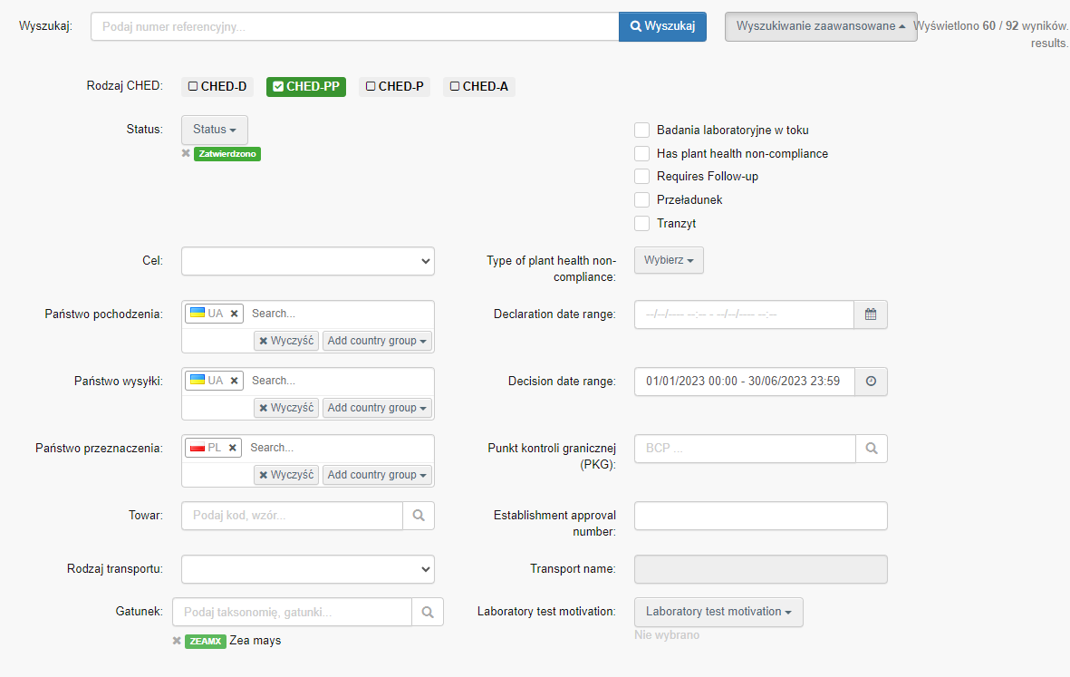 Podczas kontroli, w punkcie wwozu na terytorium Unii Europejskiej, sprawdzone zostanie świadectwo fitosanitarne, zgodność i spójność informacji zawartych w dokumencie CHED z innymi dokumentami dołączonymi do przesyłki oraz zdrowotność tego materiału. W trakcie kontroli mogą zostać pobrane próbki i przeprowadzone analizy laboratoryjne. Tylko materiały, które spełnią wymagania zostaną dopuszczone do wwozu na terytorium Unii Europejskiej.