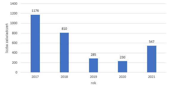 Odnosząc się do skali sprzedaży ziemniaków z Polski do innych państw członkowskich Unii, w 2021 r. przemieszczono 12 060 t ziemniaków, dla których jednostki PIORiN wystawiły łącznie 547 zaświadczeń. 241 zaświadczania wystawiono dla 4 599 t sadzeniaków ziemniaka, a 306 zaświadczeń dla 7 461 t ziemniaków innych niż sadzeniaki. (co przedstawia poniższy wykres). Krajami gdzie skierowano najwięcej przesyłek ziemniaków były: Republika Czeska – 175, Holandia – 68 oraz Niemcy – 65.