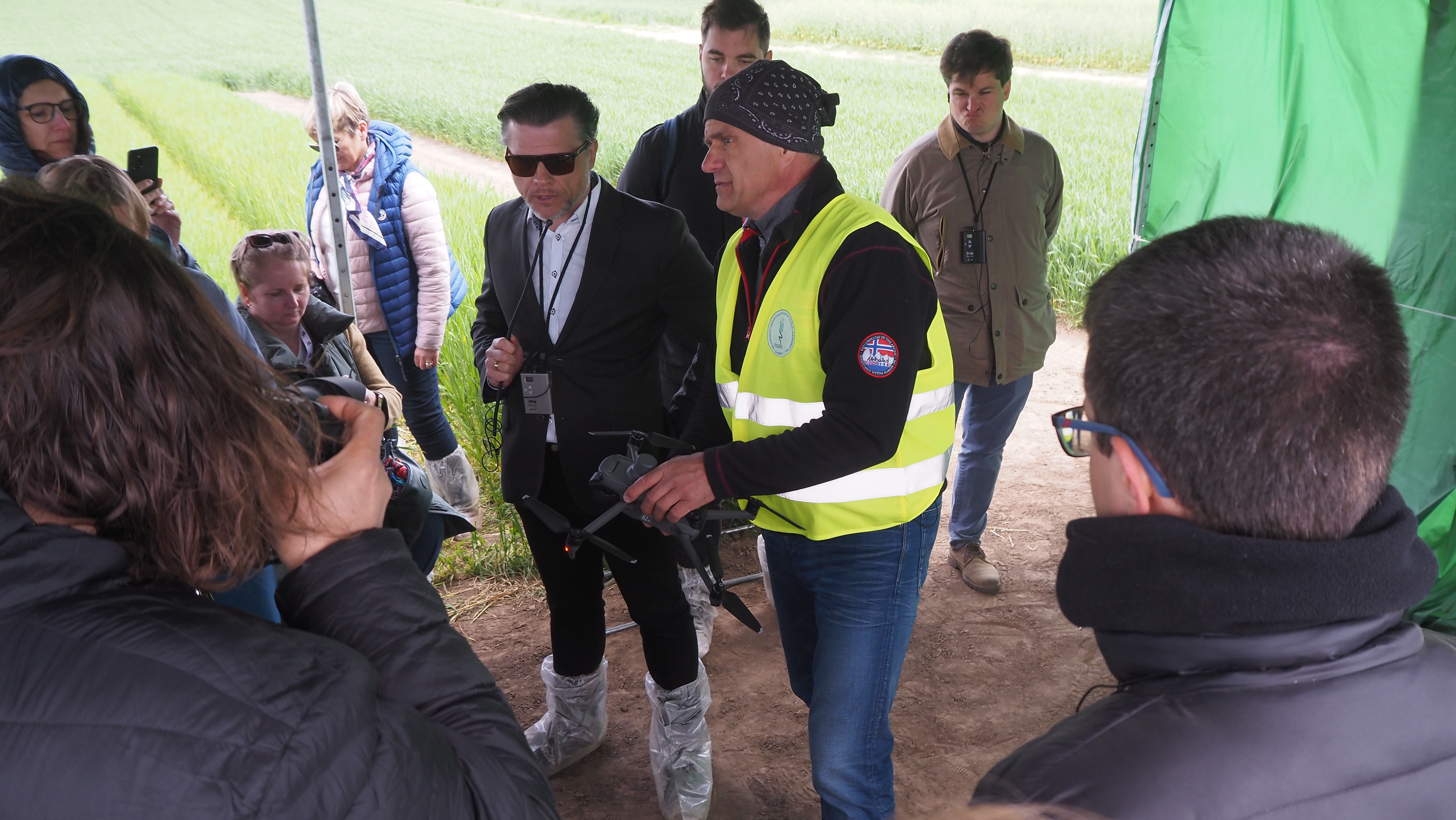 Po krótkiej przerwie uczestnicy udali się pieszo na pobliskie pola doświadczalne, gdzie odbyła się część praktyczna spotkania. Zaprezentowano poletka przygotowane na szkolenia dla kwalifikatorów oraz omówiono system szkoleń z zakresu oceny polowej plantacji nasiennych. Dużym zainteresowaniem cieszył się także temat wykorzystania bezzałogowych statków powietrznych (dronów) w pracach Inspekcji w szczególności w ocenie polowej plantacji nasiennych. Uczestnicy mogli zapoznać się z możliwościami nowoczesnych technologii obrazowania multispektralnego w precyzyjnym monitorowaniu upraw. Po powrocie z poletek kontynuowano nieformalne rozmowy i wymianę doświadczeń.