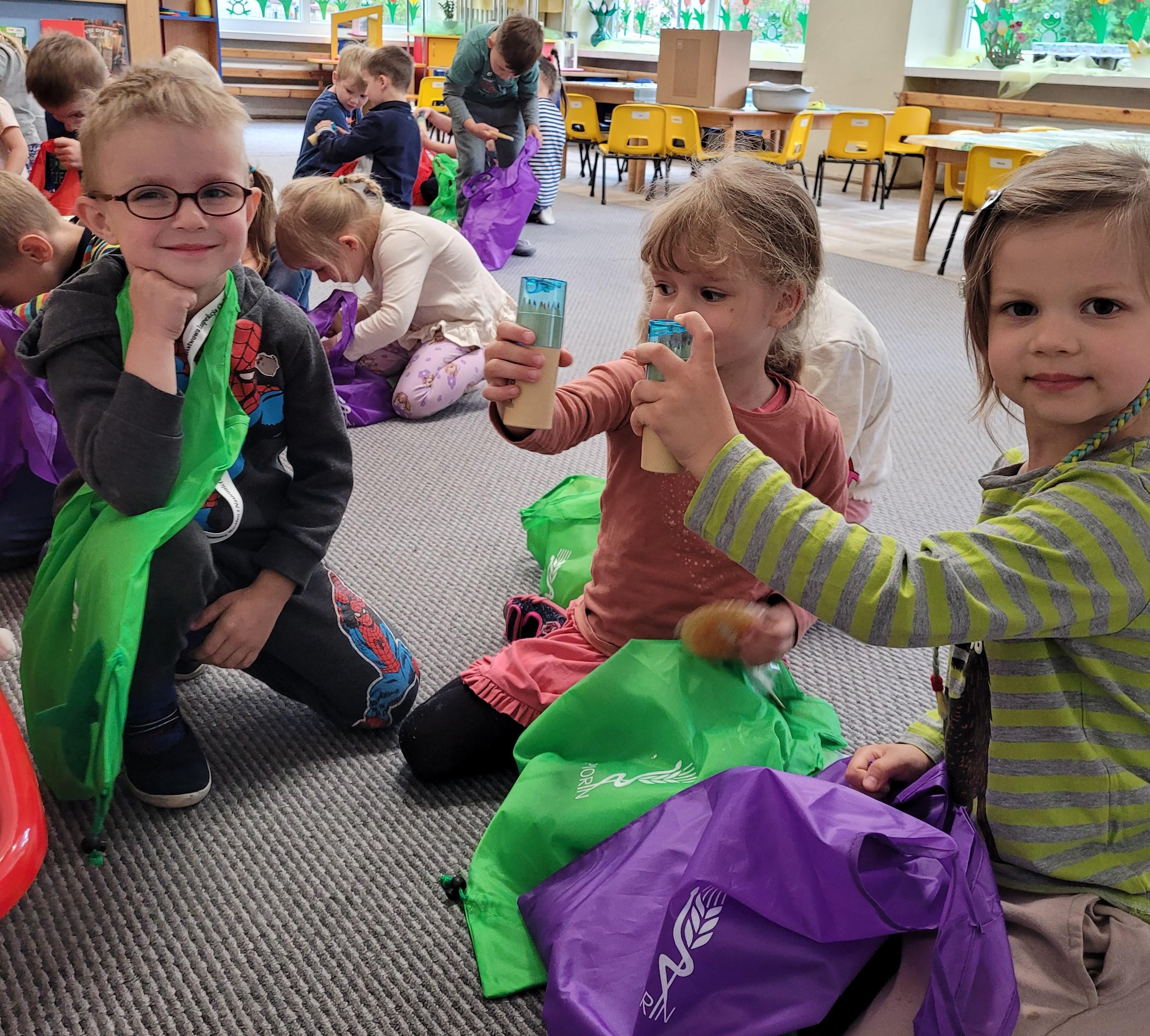 „Gryzmołki” poznały pierwsze zasady uprawy roślin samodzielnie wysiewając koperek. Będą miały okazję obserwować jego kiełkowanie i wzrost oraz wprawiać się w dbaniu o rośliny. Z czasem koperek posłuży przedszkolakom do dekoracji drugiego śniadania.