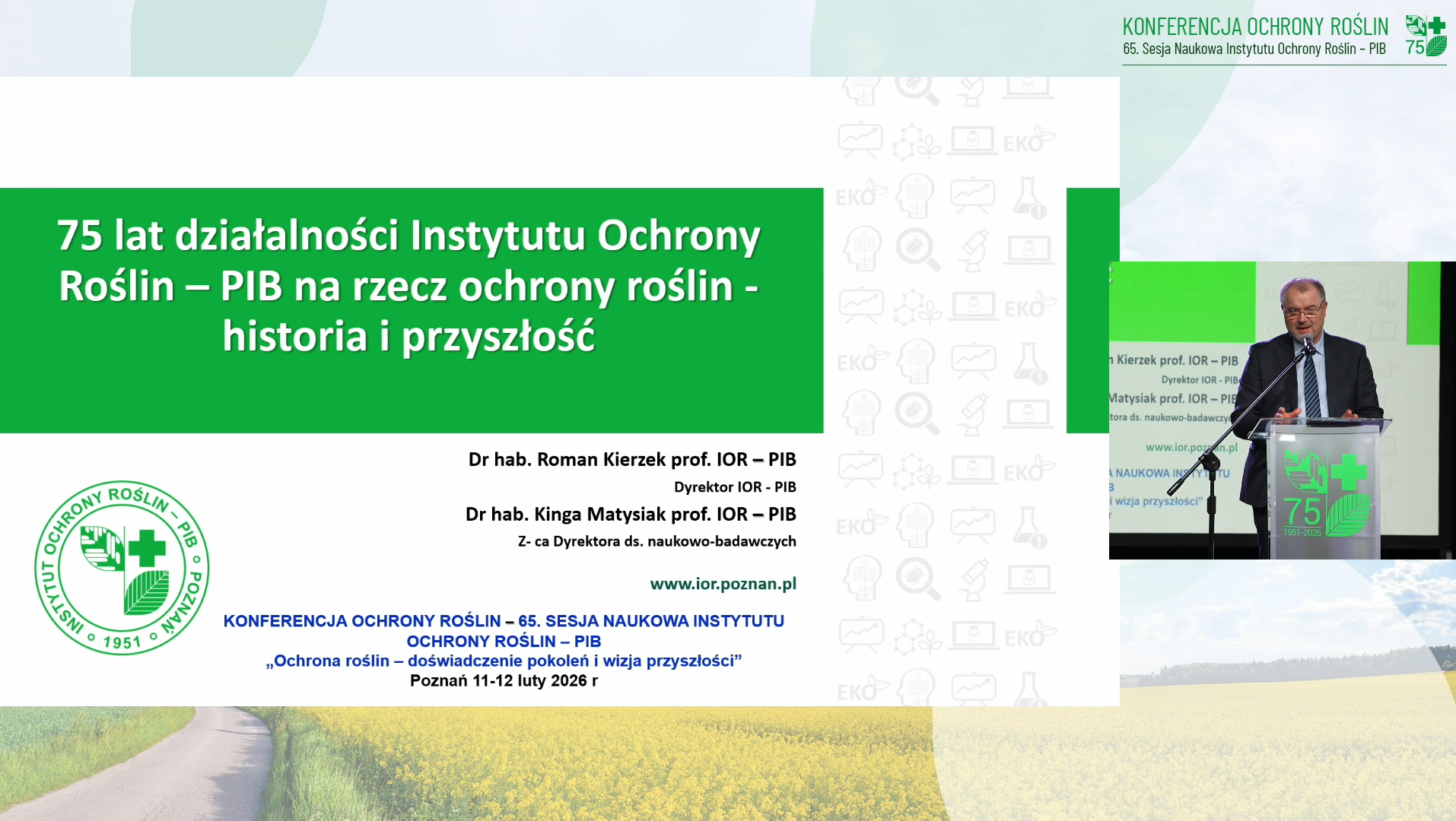 11 lutego 2026 r. w Poznaniu odbyło się uroczyste otwarcie Konferencji Ochrony Roślin - 65. Sesji Naukowej Instytutu Ochrony Roślin - Państwowego Instytutu Badawczego. Tegoroczna edycja ma szczególny, jubileuszowy charakter - wydarzenie połączone jest z obchodami 75-lecia działalności IOR-PIB.