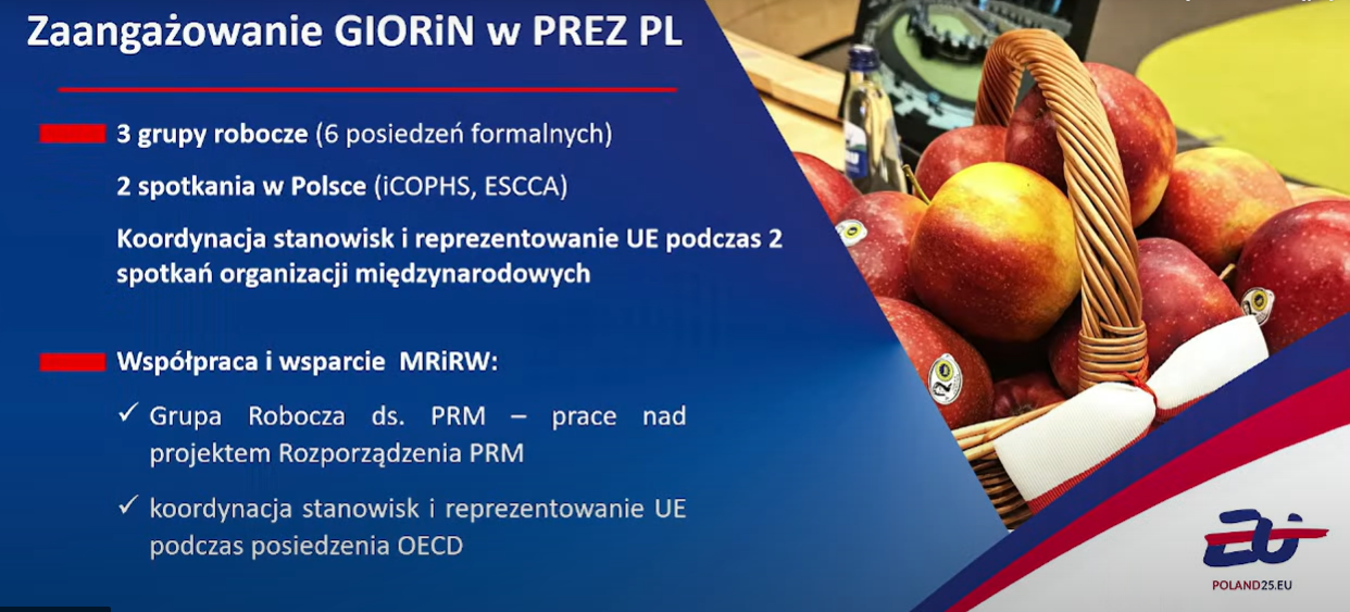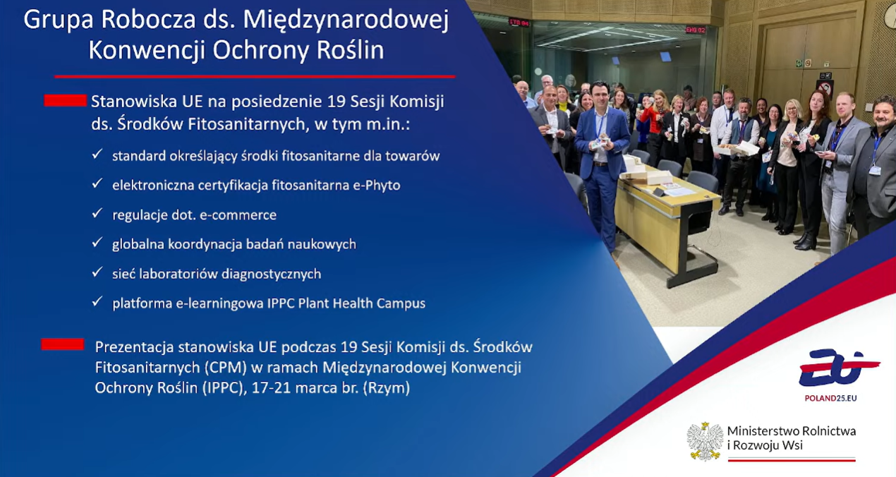 GIORiN aktywnie włączył się w realizację celów polskiej prezydencji, oferując merytoryczne wsparcie i inicjując działania na rzecz zwiększenia bezpieczeństwa fitosanitarnego, wspierania eksportu oraz wzmacniania pozycji polskiego sektora rolno-spożywczego na arenie międzynarodowej.Dzięki zaangażowaniu ekspertów i dobrej współpracy z instytucjami unijnymi oraz krajowymi, był to czas dobrze wykorzystany – zarówno dla Inspekcji, jak i dla całego sektora rolniczego w Polsce.