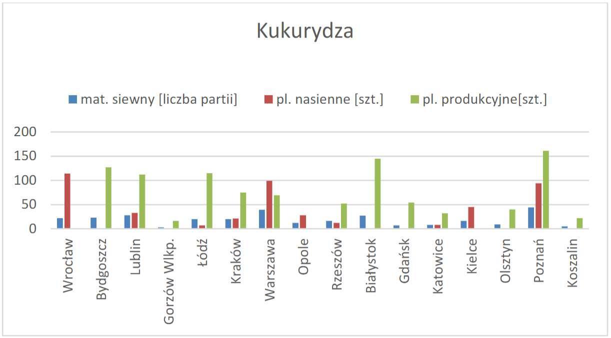 Na wykresach 1-3 przedstawiano liczbę kontroli upraw przeprowadzonych w poszczególnych województwach dla ustalonych gatunków roślin uprawnych.