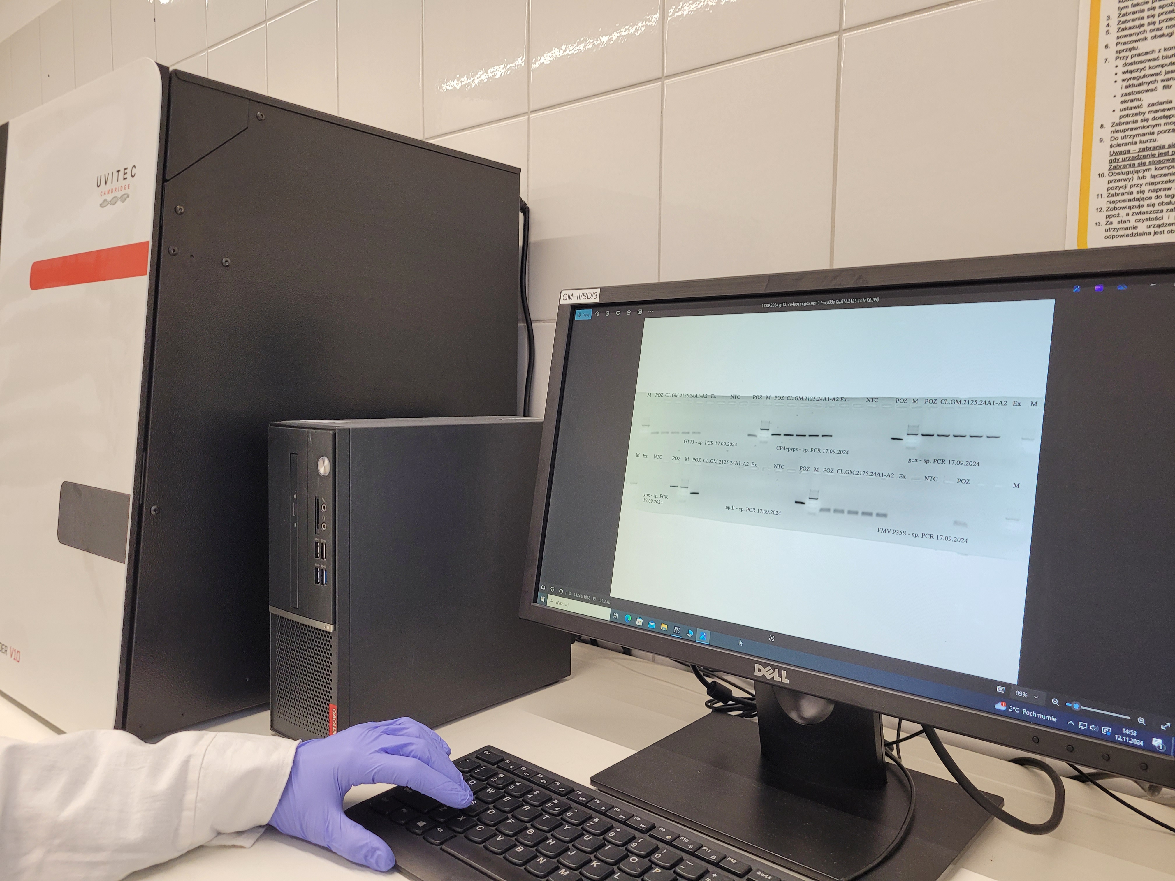 Realizując program kontroli i stosując metody oparte na biologii molekularnej Real-time PCR i PCR, szukano:
