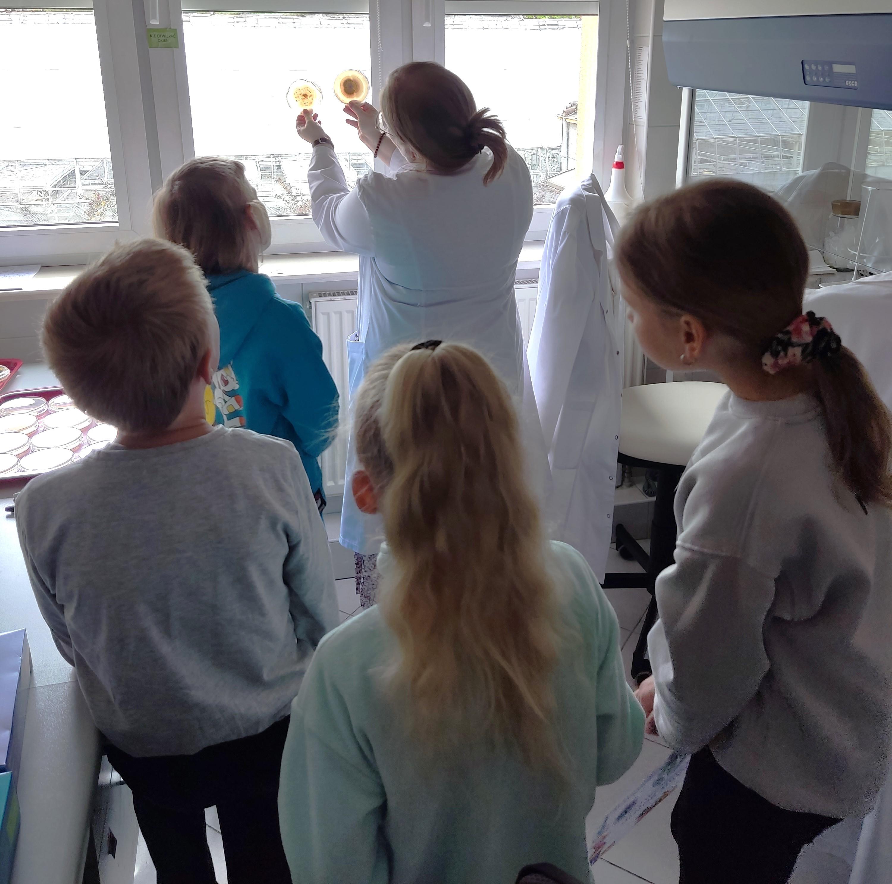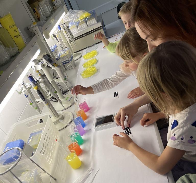 W pracowni entomologii, nematologii i herbologii najmłodsi obejrzeli pod mikroskopami owady, liście, skrzydła motyli. Poznały podstawowe pojęcia dotyczące anatomii owadów oraz oglądały tablice entomologiczne. W pracowni bakteriologii dzieci zostały zaznajomione z informacjami na temat bakterii chorobotwórczych roślin i z obsługą pipety automatycznej. Oglądano świecące bakterie na preparatach pod mikroskopem oraz na zdjęciach. Dzieci dozowały kolorowe roztwory na szkiełka mikroskopowe, następnie były one suszone na cieplarce i oglądano je pod mikroskopem. Mali goście obejrzeli także działanie śluzy w pracowni molekularnej.