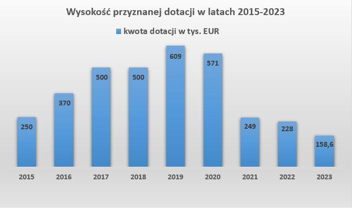 2015-2023 i przyznała Polsce dofinansowanie w łącznej wysokości około 3,5 mln EUR. Zmniejszona kwota dofinasowania od 2021 r. wynika z ograniczonych środków finansowych na poziomie Unii Europejskiej dla wszystkich państw członkowskich.